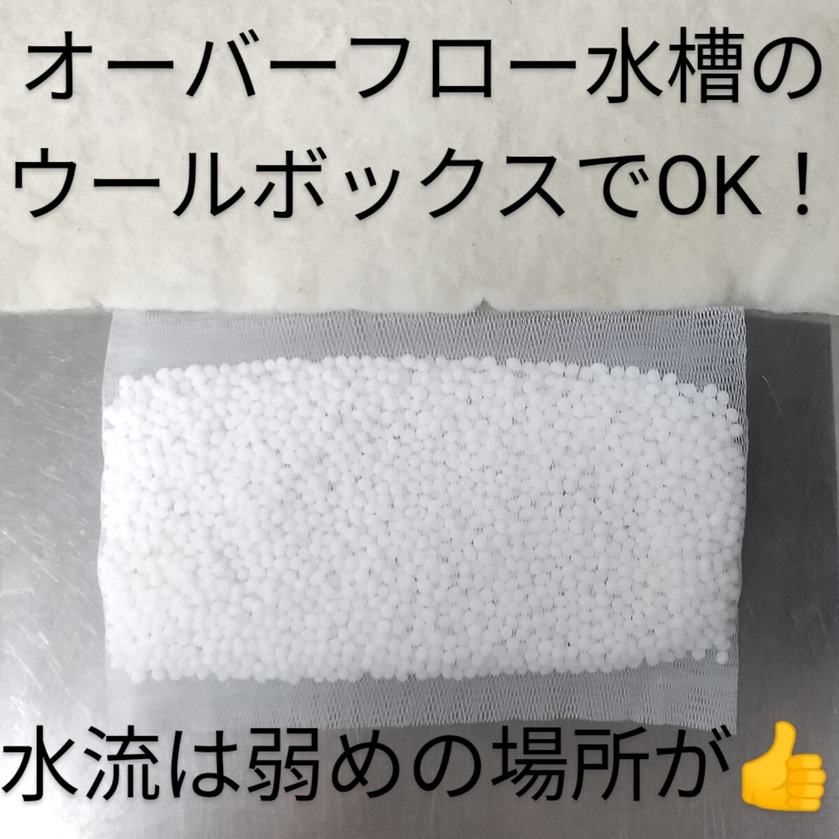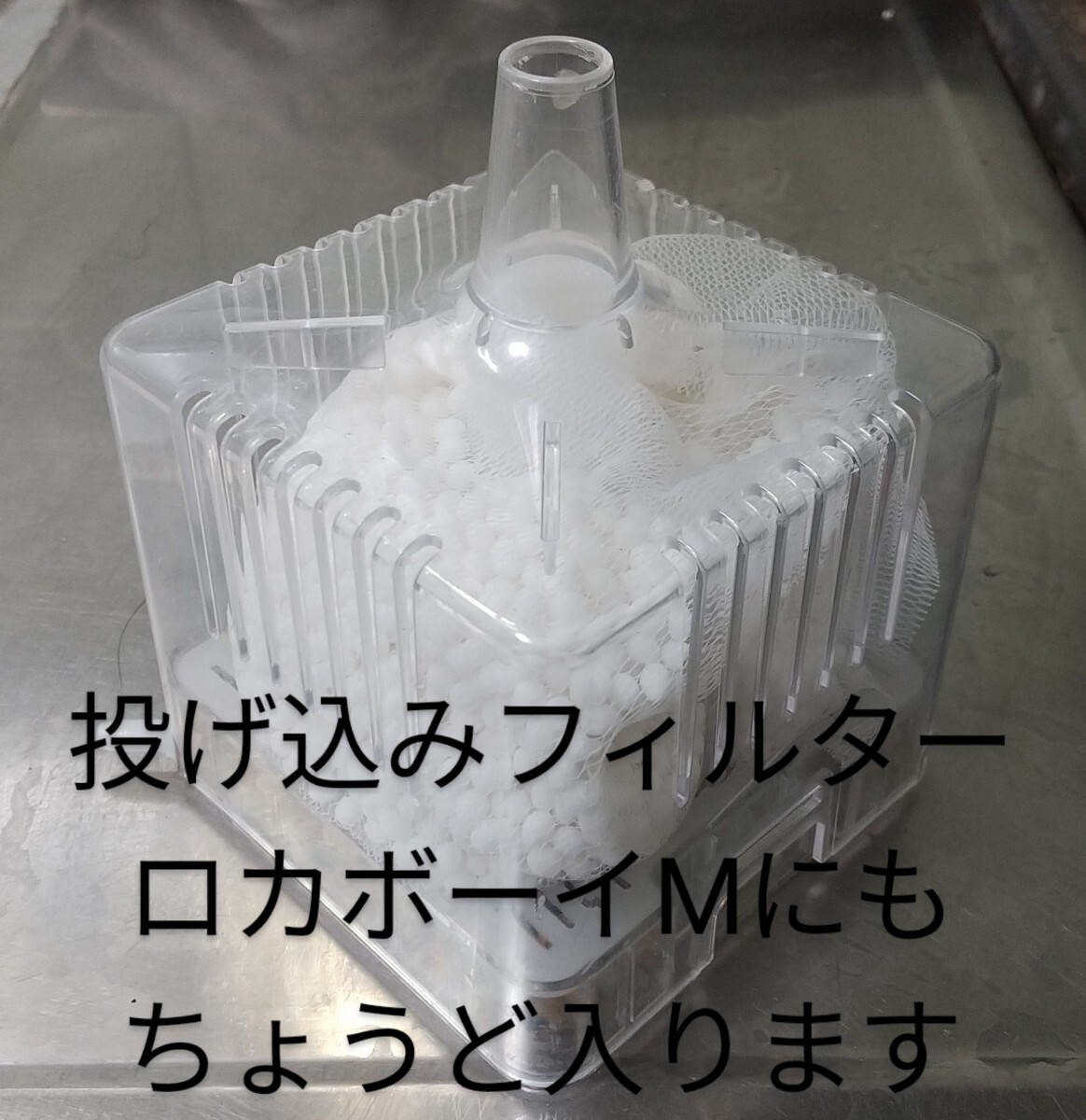 シャワー状に水を供給する箇所でも使用できるので、オーバーフロー水槽のウールボックスのウール上や、上部式ろ過槽のろ材の一番上などでも効果を発揮します。