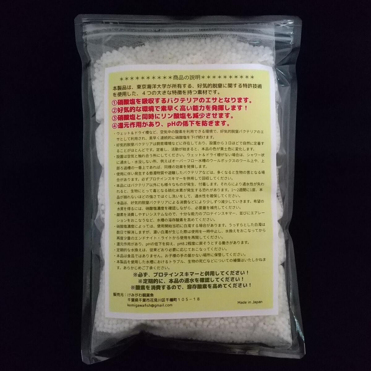 新開発技術の好気的脱窒を実現した、水質調整材です。海水・汽水用です。