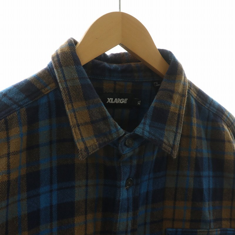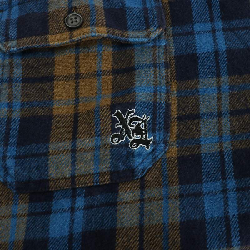 エクストララージ X-LARGE ヘビーウェストフランネルシャツ チェック 長袖 ロゴ刺繍 XL ネイビー ベージュ 101223014006 /NQ メンズ