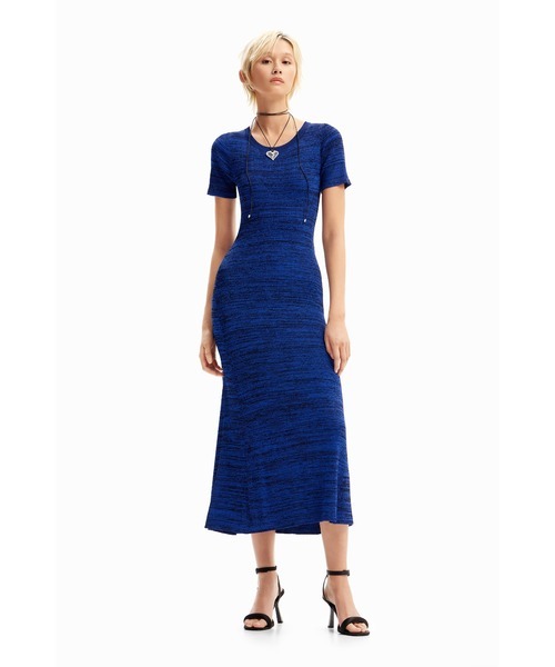 参考商品名:まだら模様 リブ編み ロングワンピース