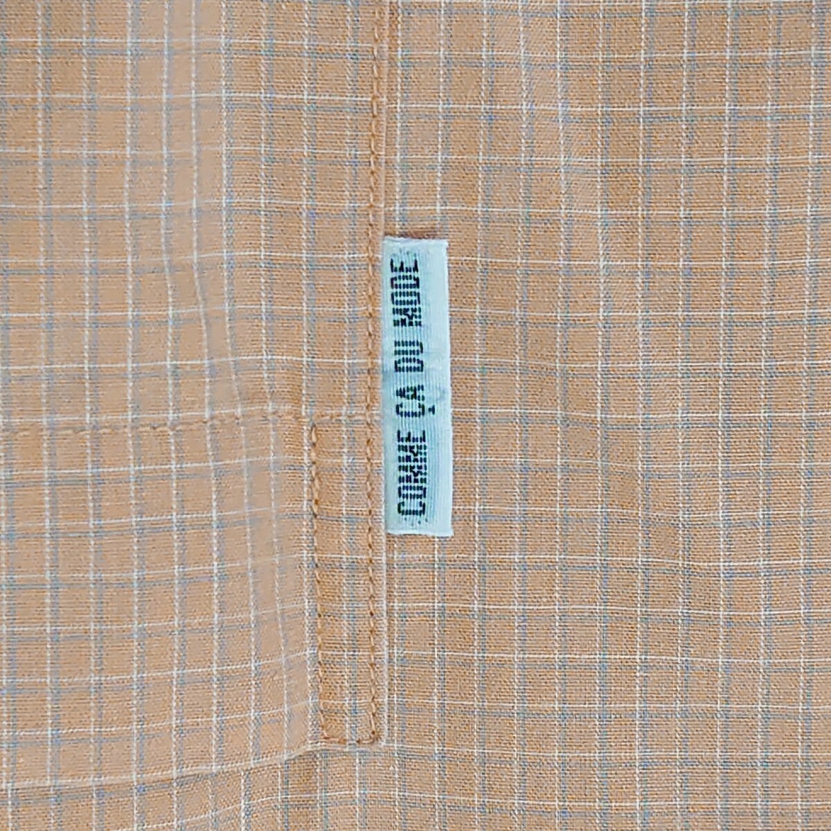 軽やかなコットン素材で、オレンジベースの細かいチェック柄。