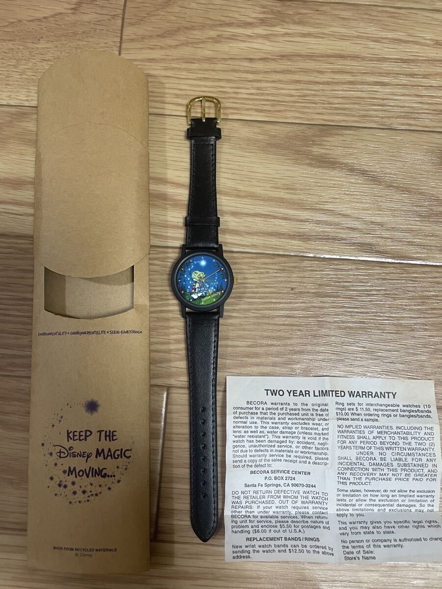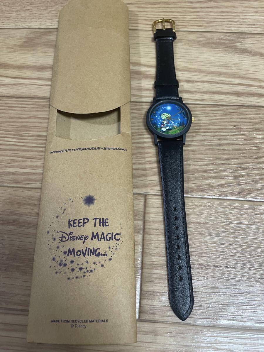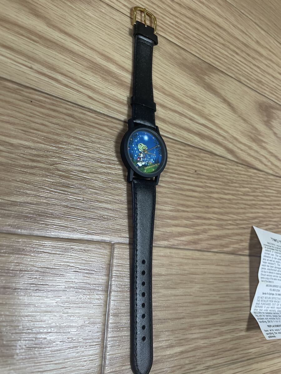 ディズニーキャラクター「ジミニー・クリケット」がデザインされたクォーツ腕時計です。