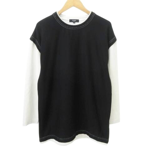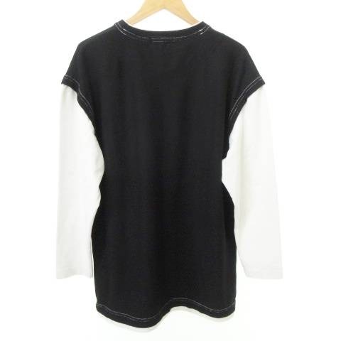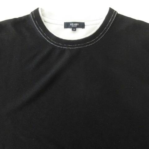ビームスハート BEAMS HEART Tシャツ 長袖 切替 無地 クルーネック 薄手 Sサイズ 黒 ブラック 白 ホワイト ■MET1 メンズ