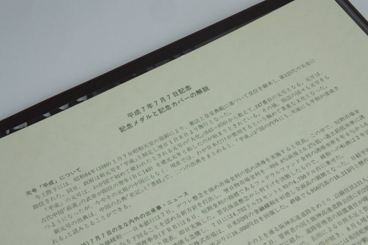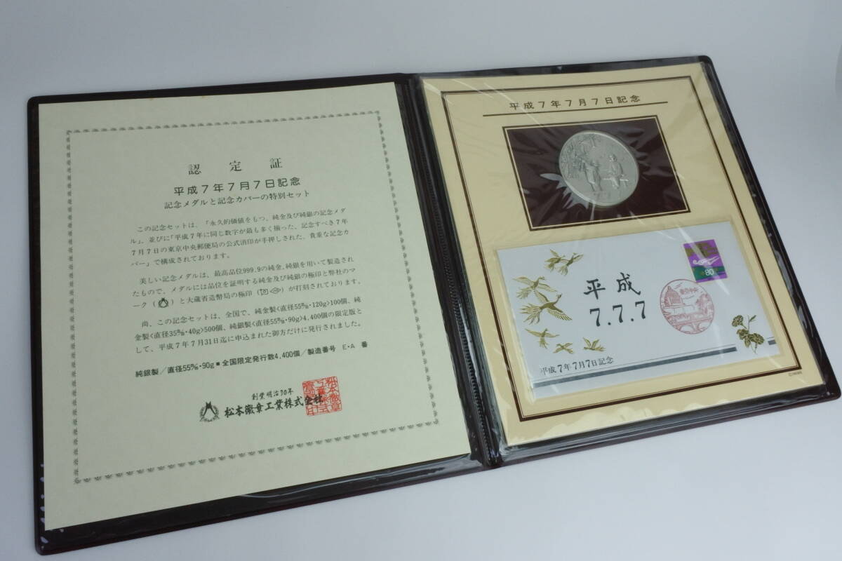 限定発行数 4.400セット 純銀90g製  平成7年7月7日記念メダル と記念カバーの特別 セット ☆ 極珍品