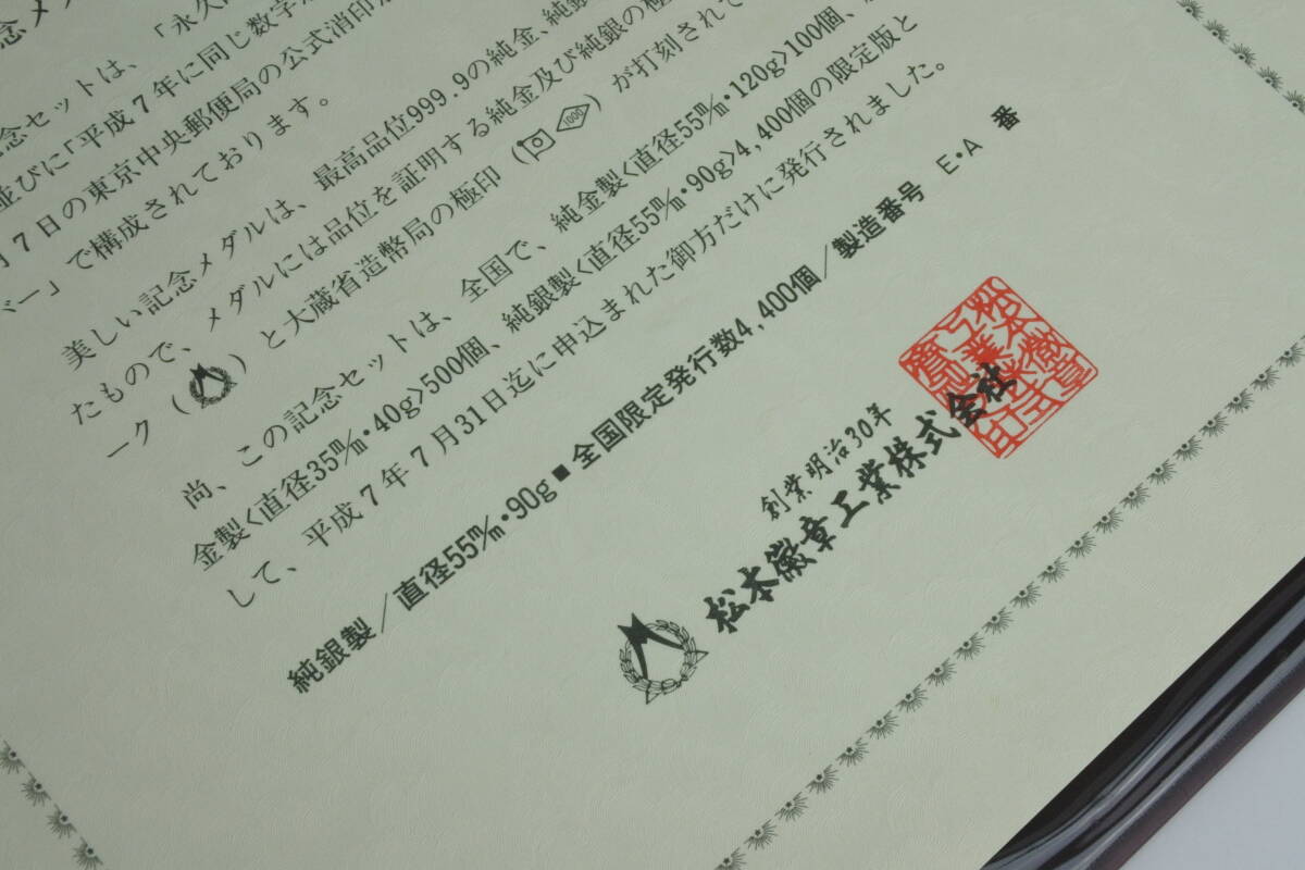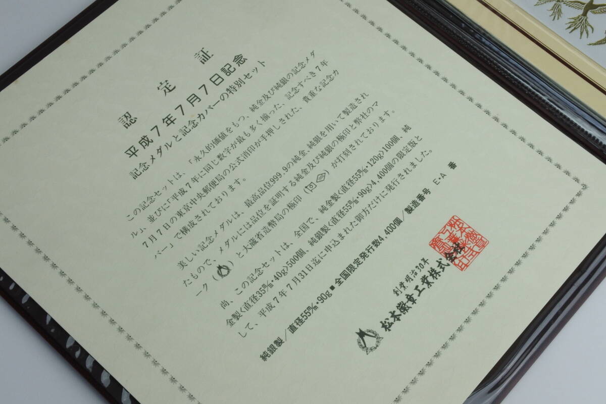 限定発行数 4.400セット 純銀90g製  平成7年7月7日記念メダル と記念カバーの特別 セット ☆ 極珍品