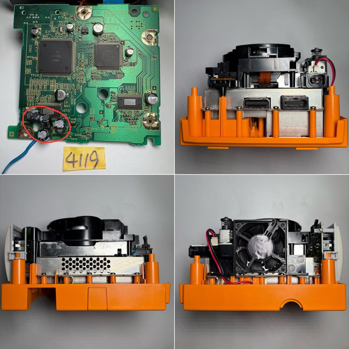 本体カバーを開けブロアー等で内部のホコリを清掃しました、赤マルのコンデンサは新品交換しています、動作は良好で長時間起動確認済みです、内部電池も新品に交換しています