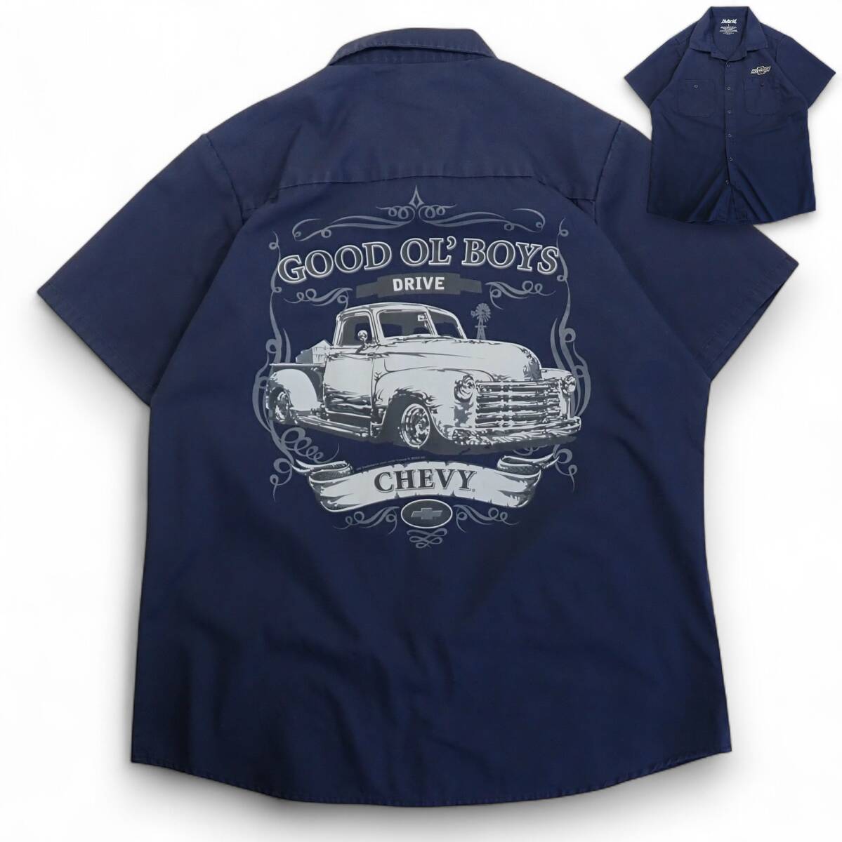 6937/Hybrid 半袖ワークシャツL●CHEVROLETピックアップトラックAdvance-Design1950 GOOD OL' BOYS CHEVYビンテージカー●洗濯プレス済古着