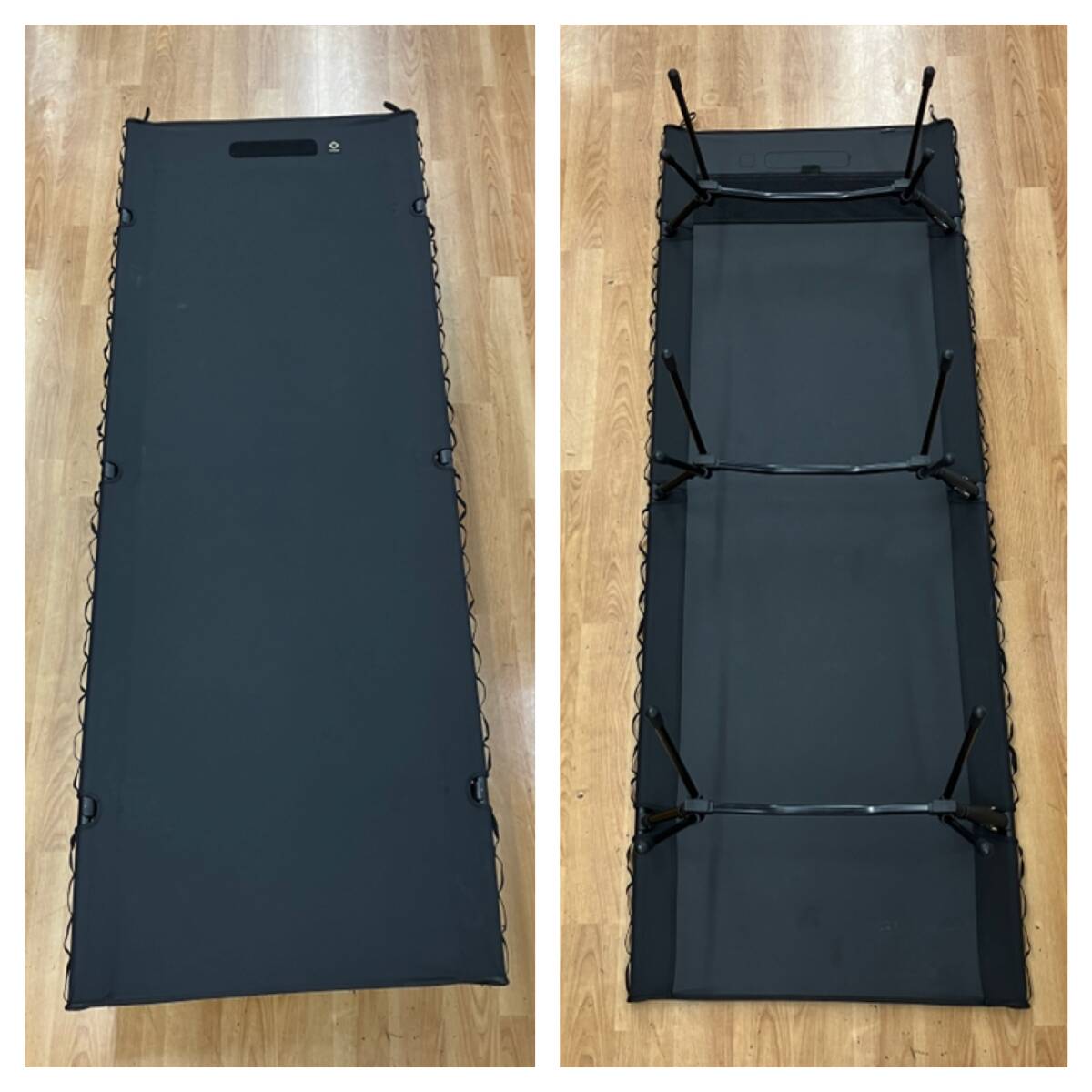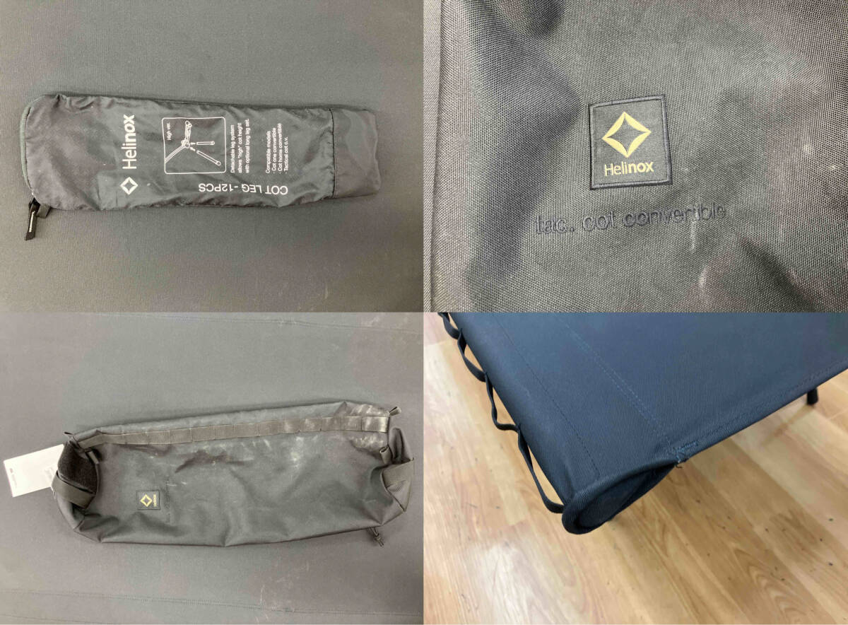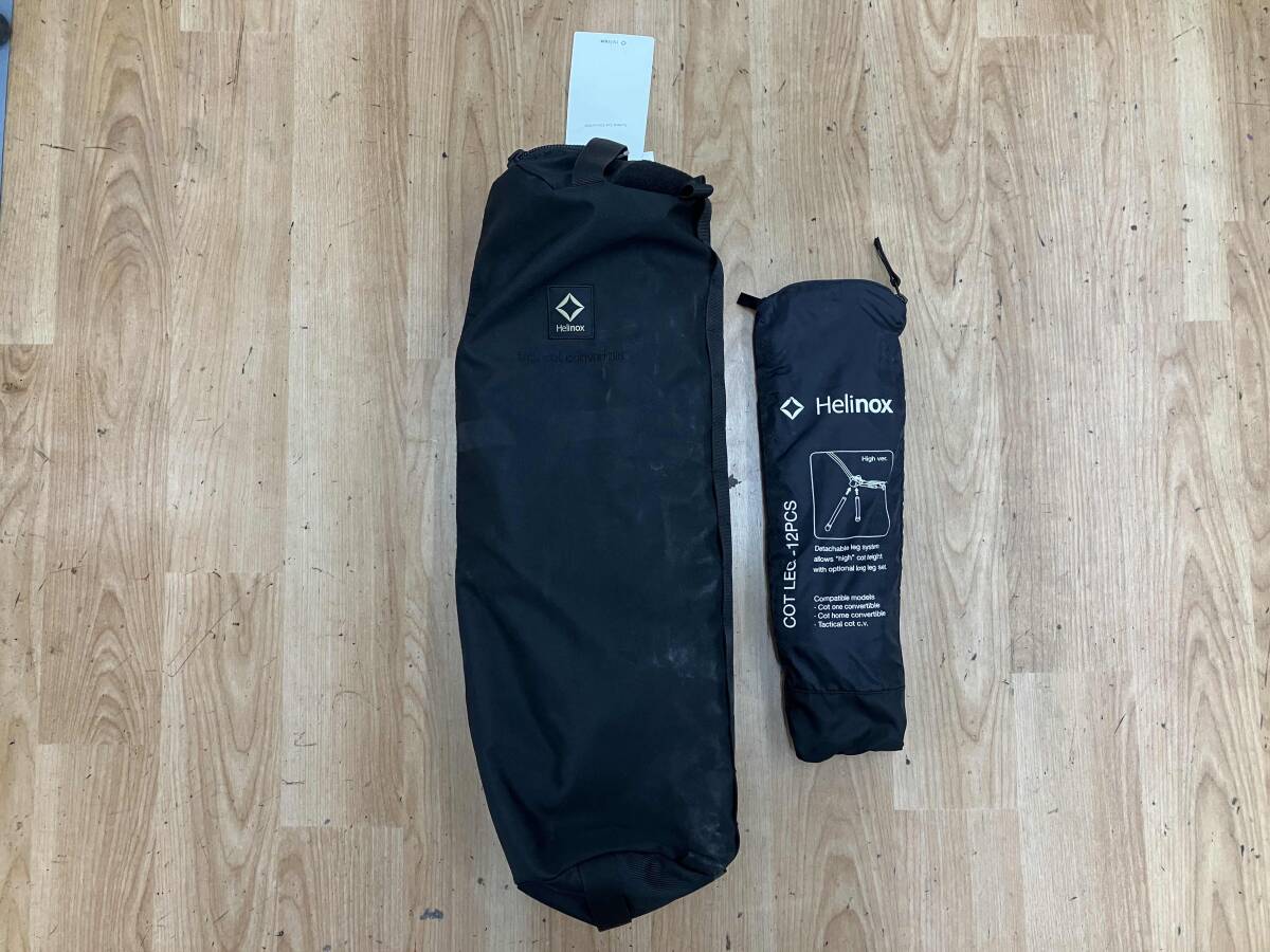 | 付属品は画像のものが全てです。 メーカー: Helinox ( ヘリノックス ) モデル:Tactical Cot convertible ( タクティカル コット コンバーチブル ) 使用時サイズ(通常) : H16.5 × W191 × D66.5cm ※付属のCot leg 使用時は高さが約38cmとなります。 収納時サイズ: H16.5 × W16.5 × 56.5cm 総重量:約2.5kg 耐荷重:145kg 付属品:Cot leg 12本セット(別売参考新品価格¥15.400-) |