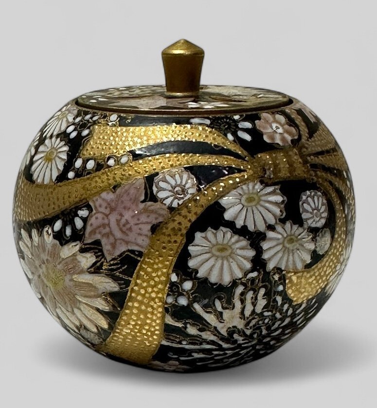 品名:彩釉香炉 作家:四代徳田八十吉 寸法:H7.7×W8.8cm 付属品:共箱 状態:蓋裏にスレ、窯ギレがございます。箱蓋裏に墨書きございます | |||