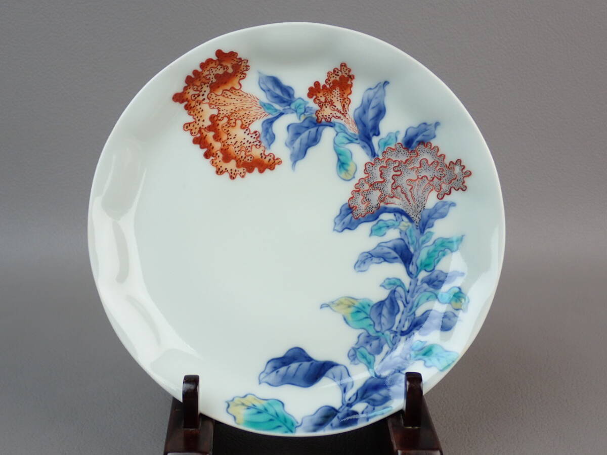 鍋島焼、今泉今右衛門、色鍋島錦獅子牡丹絵菓子皿、5客、共箱です。