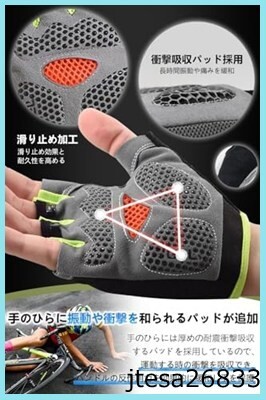 ■送料無料■サイクルグローブ 夏 自転車 手袋 指なし 指切り(パッド衝撃吸収/メッシュ通気性/3D立体/耐磨耗性/滑り止め)