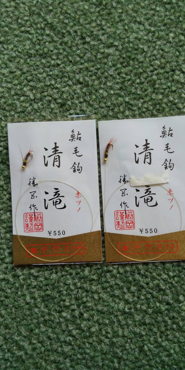 勝岡 鮎毛鉤 清滝 赤ツノ 本テグス付 2枚セットです。
