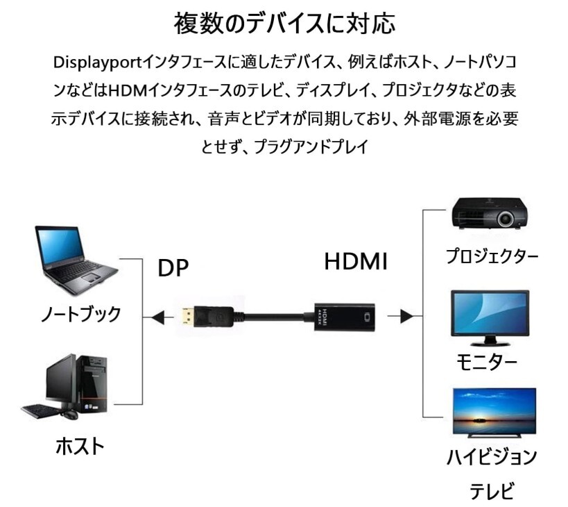 DisplayPort - HDMI アダプターは、DPを備えたデバイスを