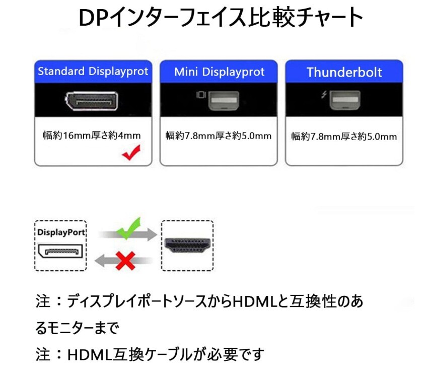 ご注意:双方向変換ではないため、HDMI から DP に信号を送信することは