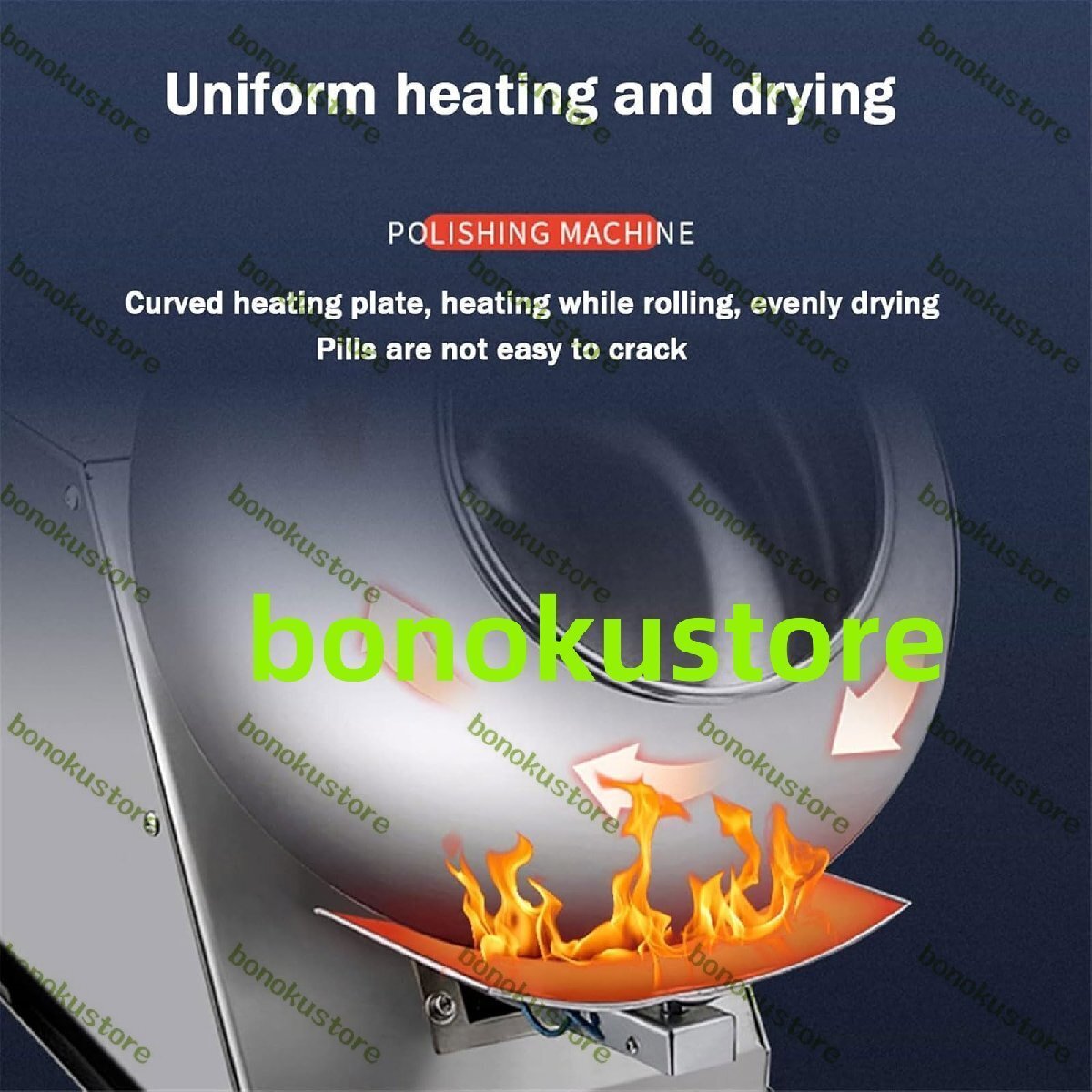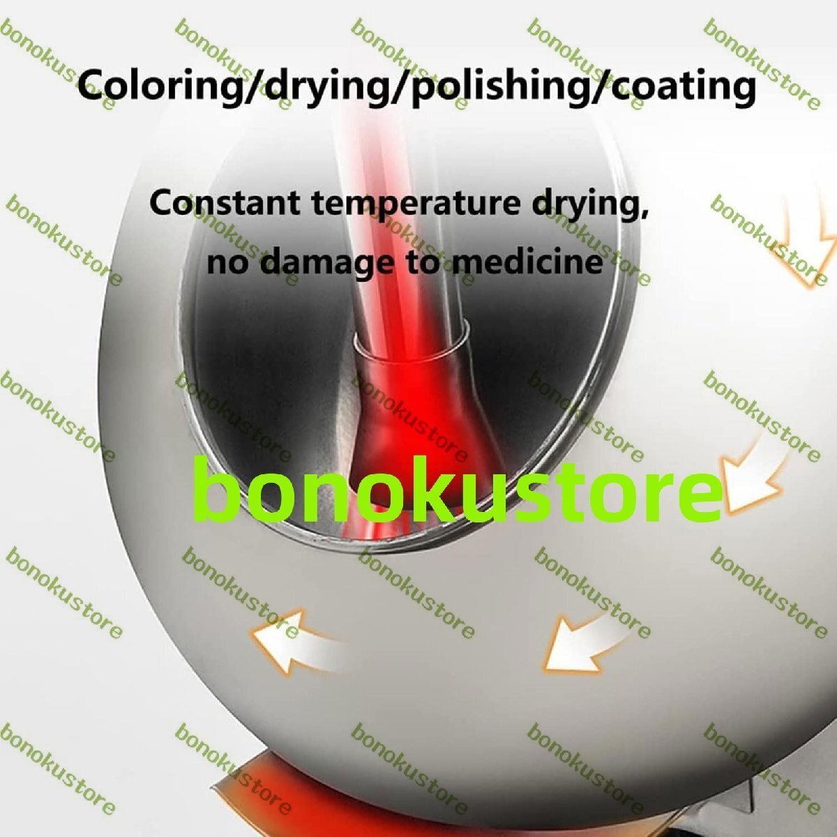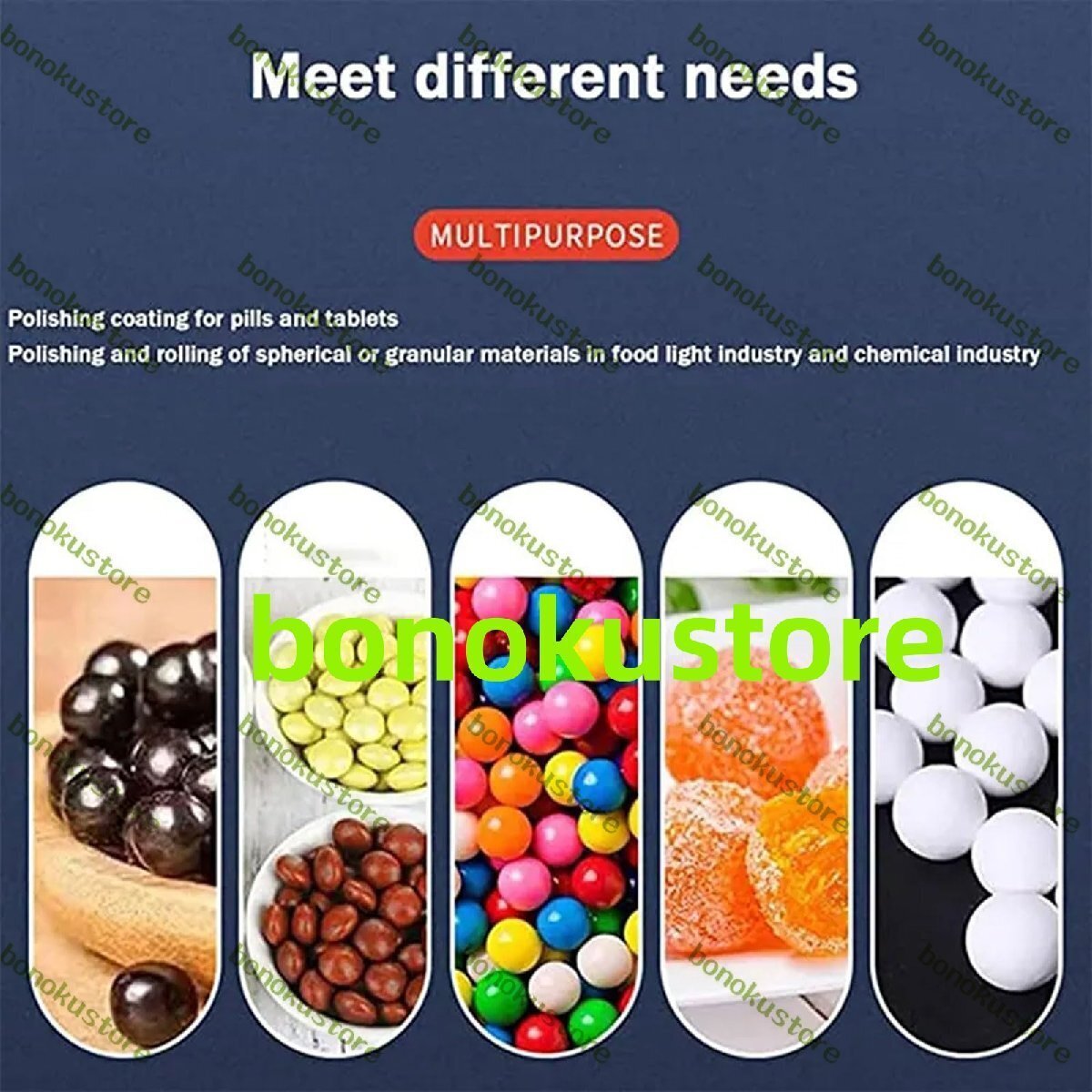砂糖コーティング機:この砂糖コーティング機のポットは、最大厚さ 6.46 mm の厚手の 304 ステンレス鋼で作られています。コンパクトなデザインでベンチスペースを最小限に抑え、使いやすく、経験豊富なプロフェッショナルと初心者の両方に適しています。