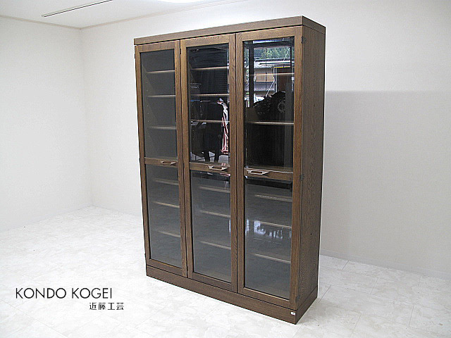 北海道旭川家具 近藤工芸/OAK オーク材英国クラシック様式書棚  本棚/ブックシェルフ/飾り棚/キュリオケース 葉山ガーデン