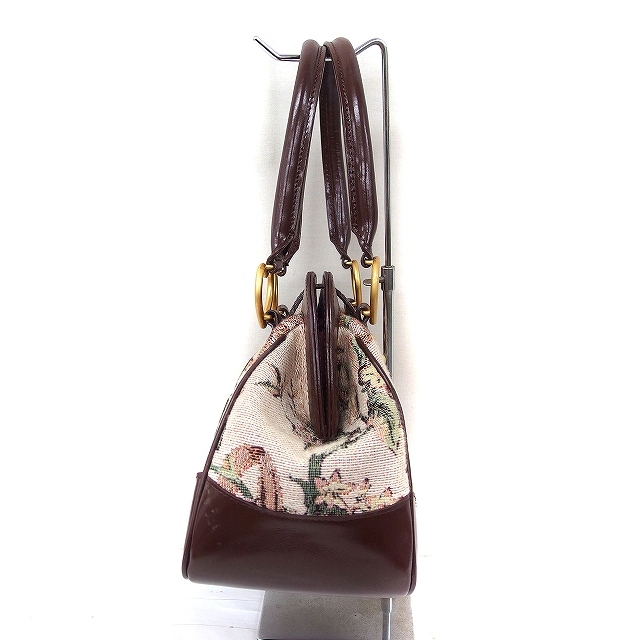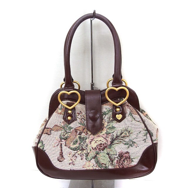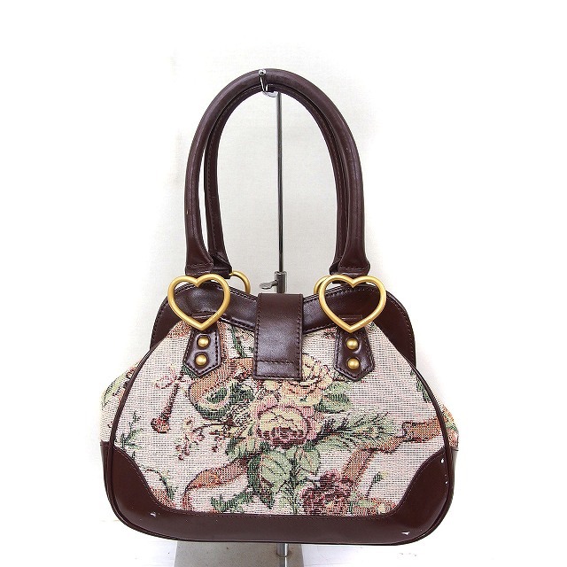 ロイスクレヨン Lois CRAYON ゴブラン織り 花柄 ハンドバッグ ダブルハンドル ハート金具 ブラウン 茶 /FT11 レディース