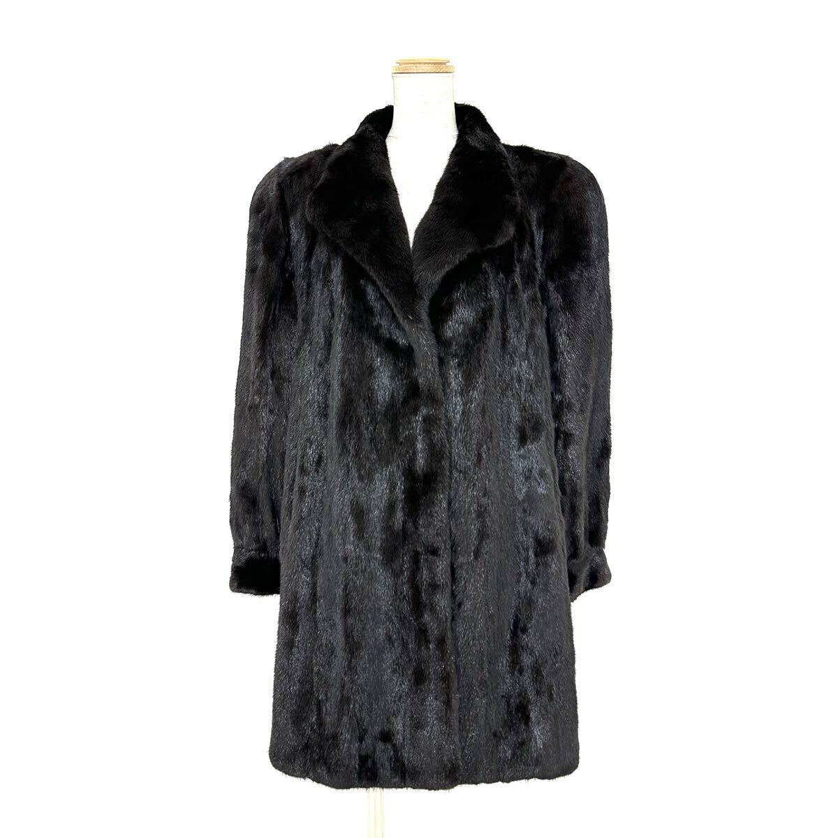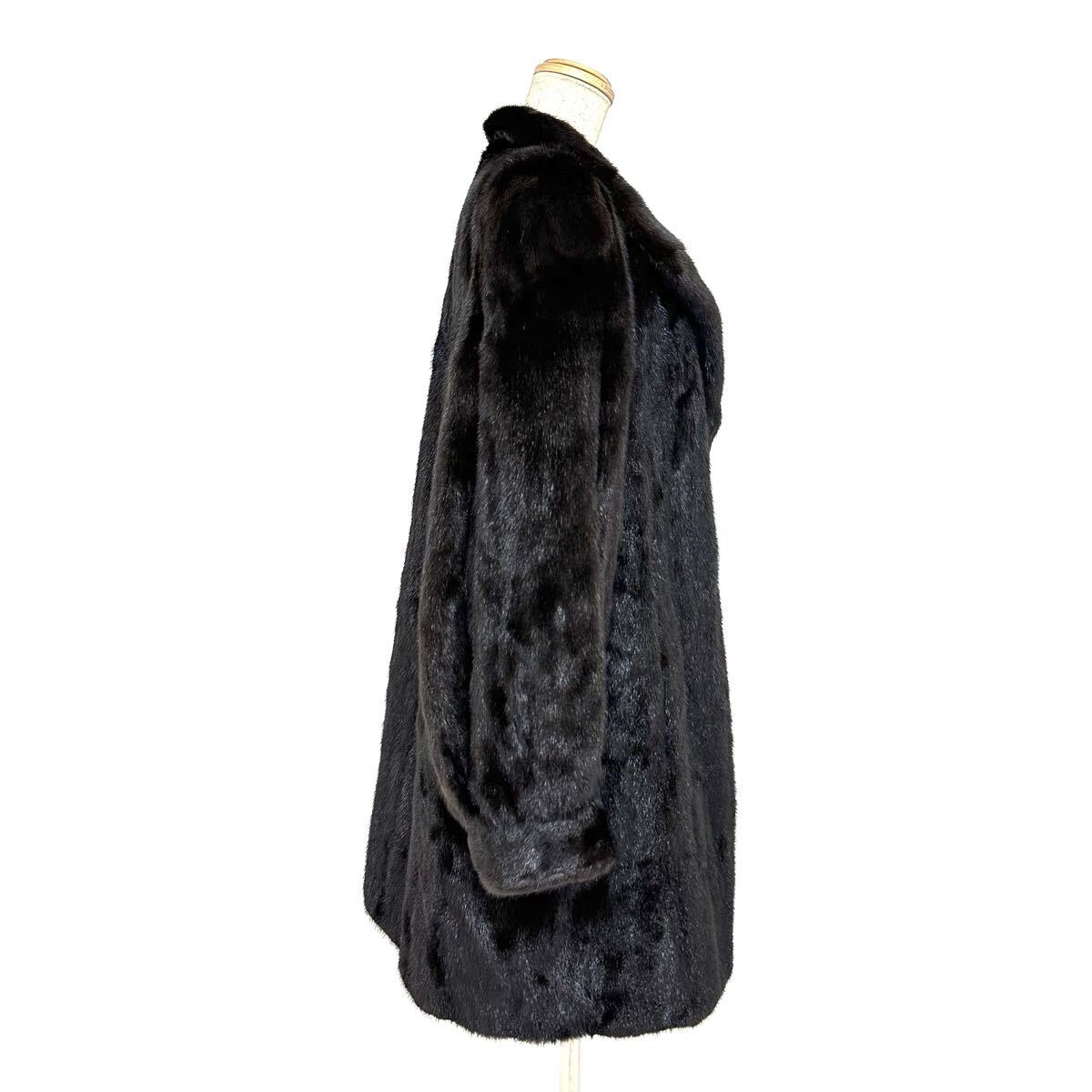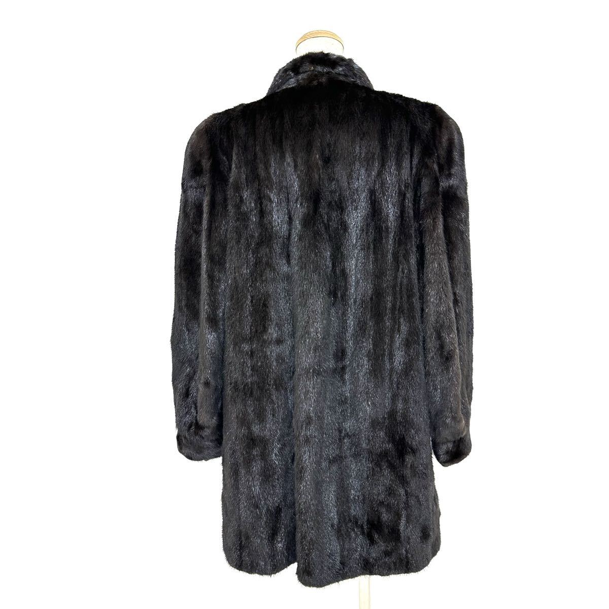 【貂商】h5857 BLACKGLAMA ブラックグラマミンク ハーフコート セミロング ミンクコート 貂皮 mink身丈 約85cm