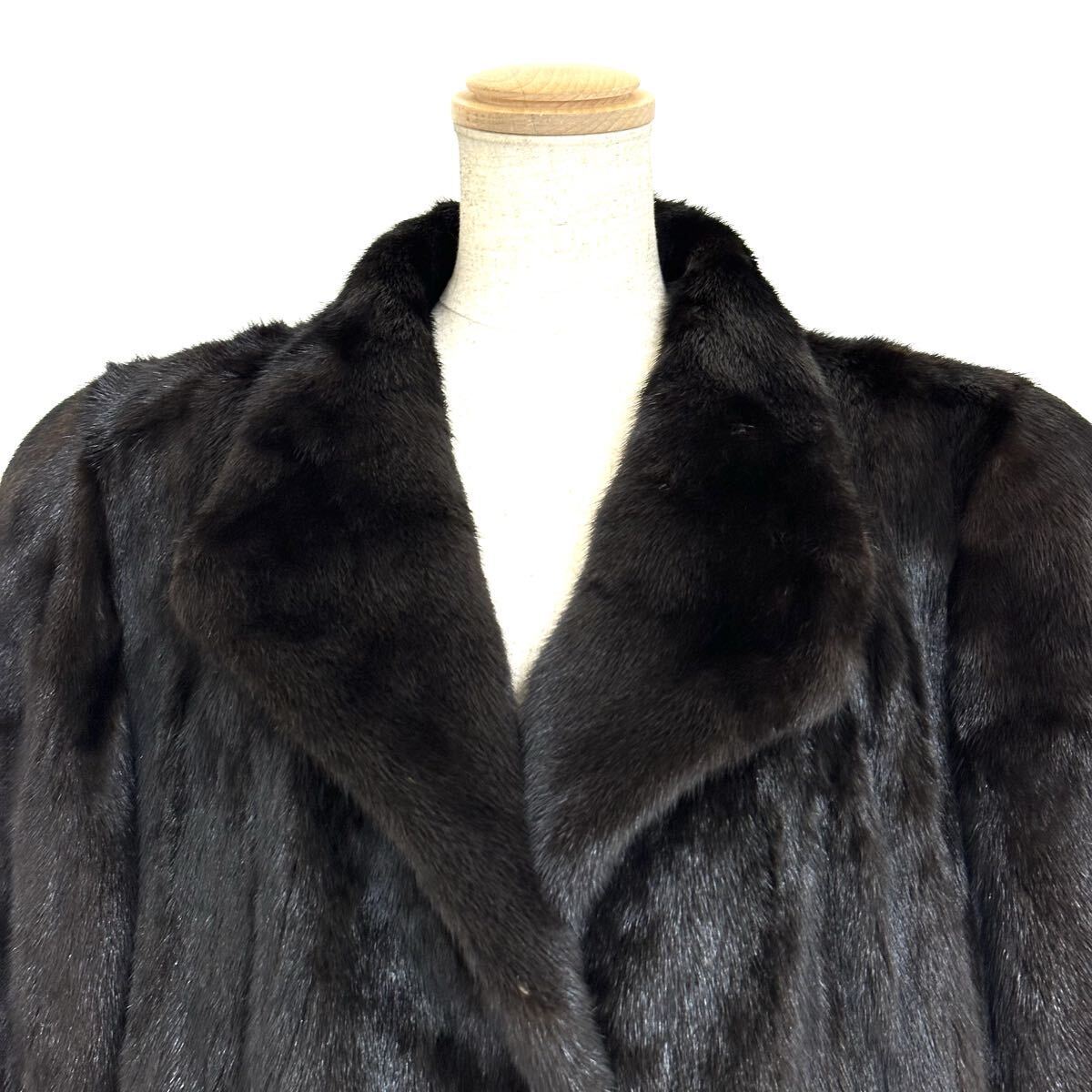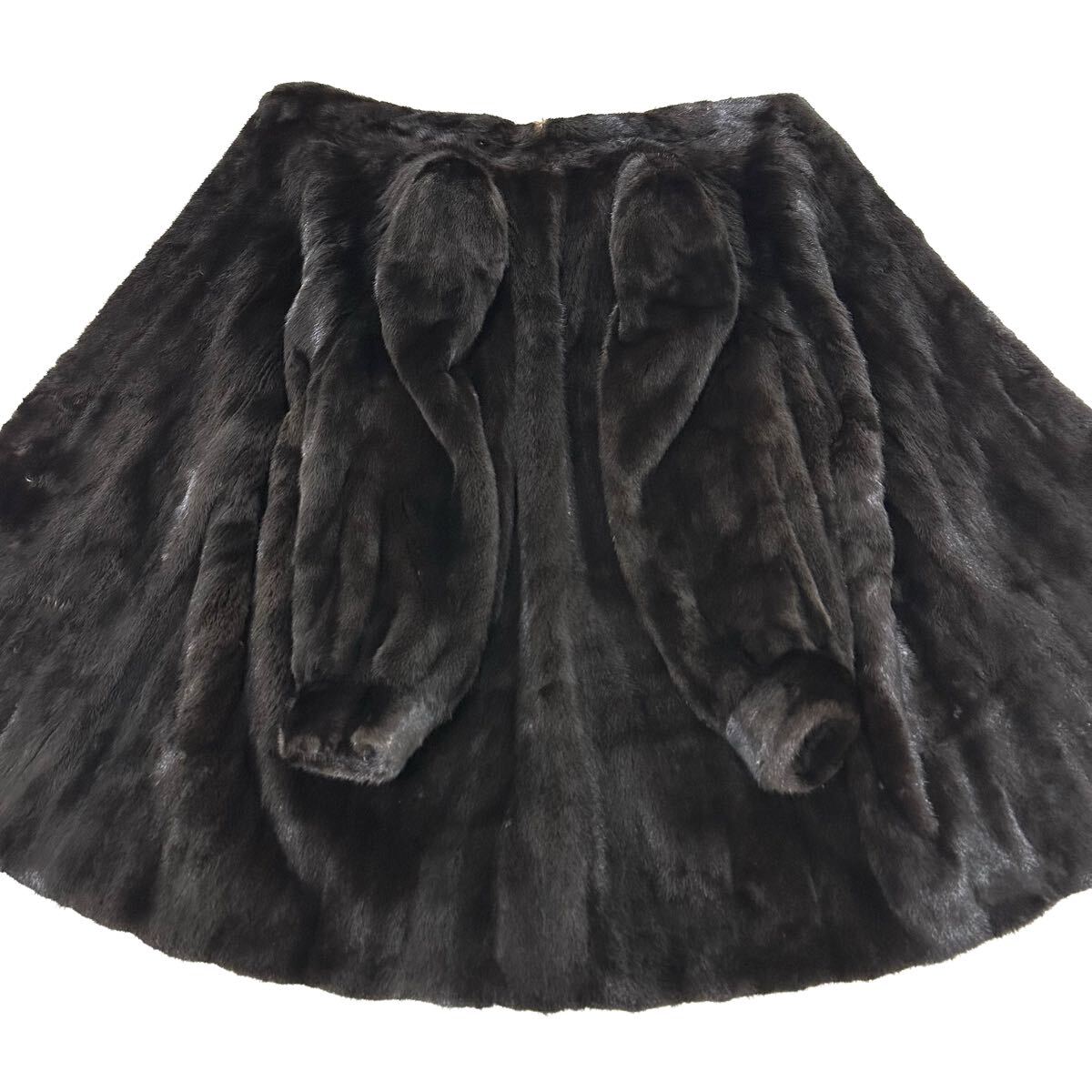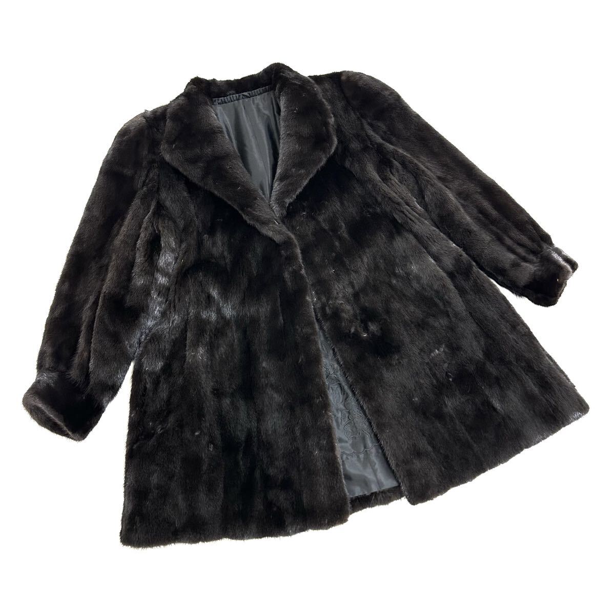 【貂商】h5857 BLACKGLAMA ブラックグラマミンク ハーフコート セミロング ミンクコート 貂皮 mink身丈 約85cm