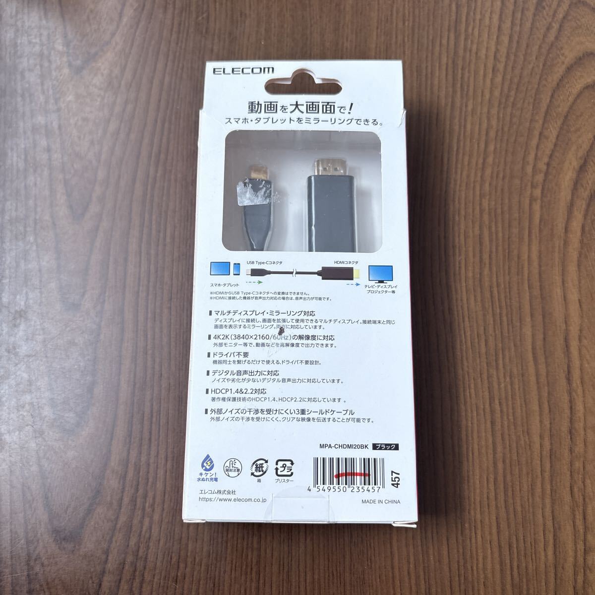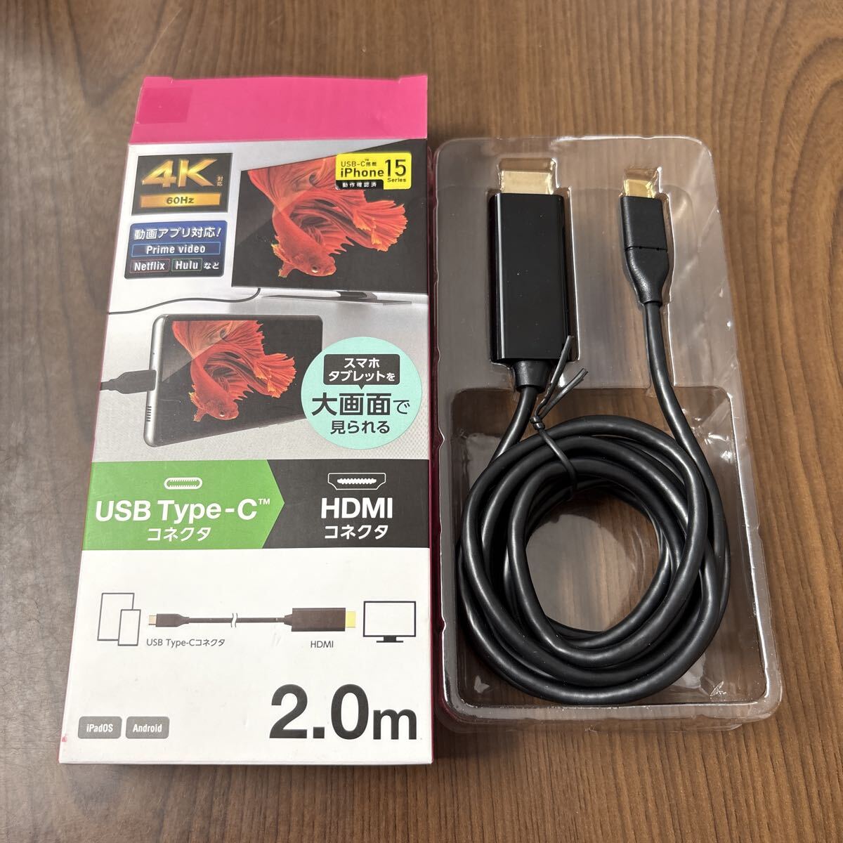 エレコム 映像変換ケーブル USB Type-C-HDMI ミラーリング対応 4K2K/60Hz 【 スマホ・タブレットの映像をテレビに出力可能 】 2m ブラック