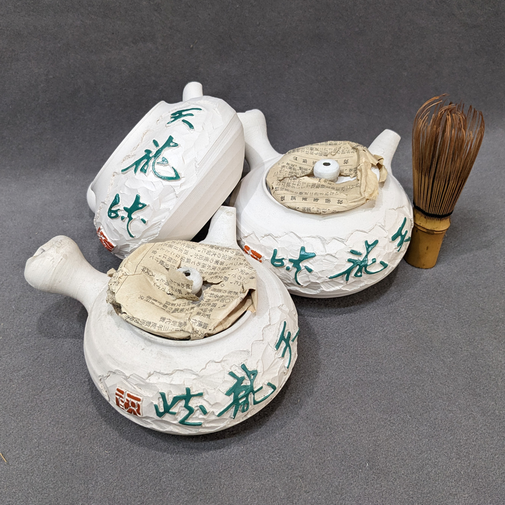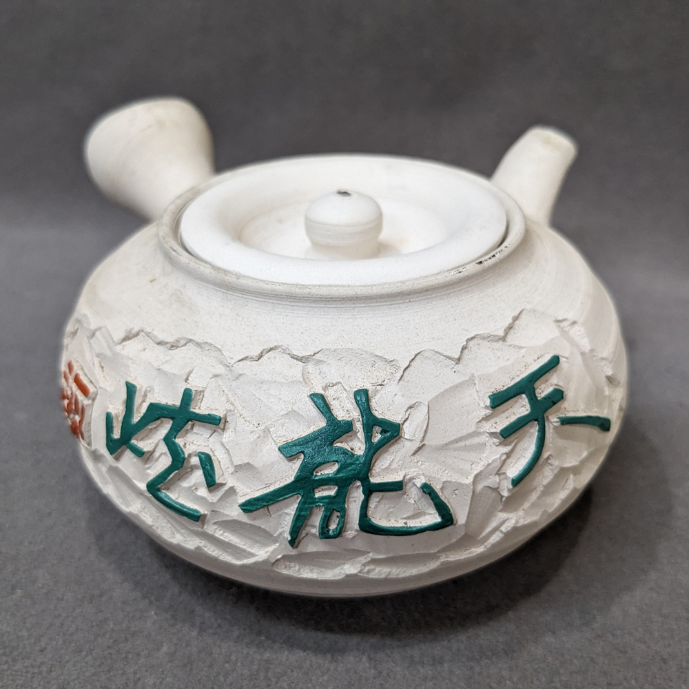 | ● 天龍峡焼 急須 3客 篆刻文字 在印 煎茶道具 未使用品 ● | |||||||||||