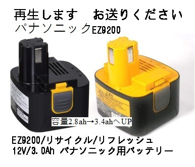 再生します EZ9200 12V/3.0Ah パナソニック用バッテリー 電動工具用