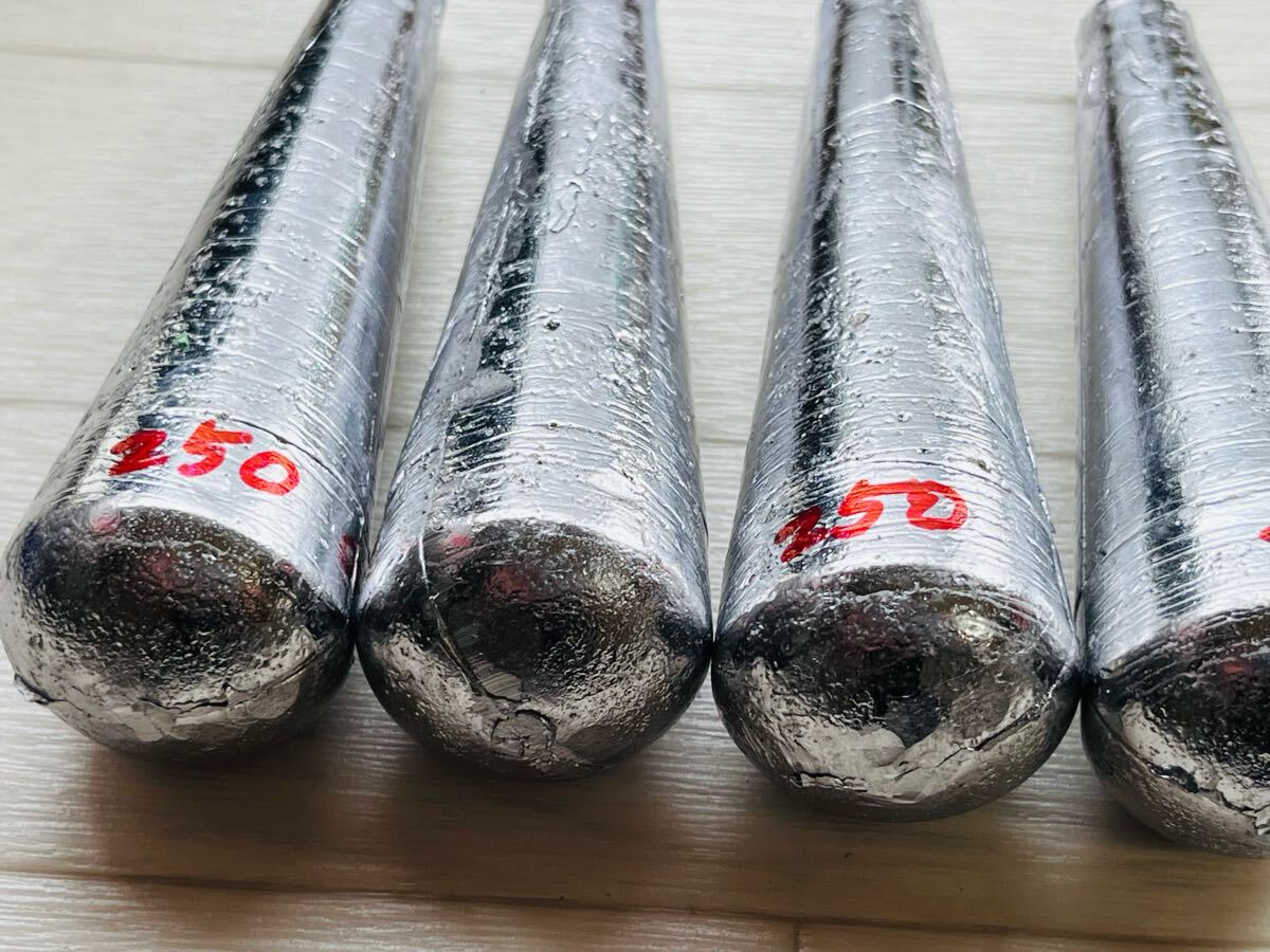 つり鐘オモリ250号4個セツト1個約930g総重量3.72kg発送はレターパックプラス全国一律600円になります。その他ゆうパックまたは佐川急便でも対応します。発送は木曜日以外の出荷になります。この形は水中に入った時に舞にくいです。