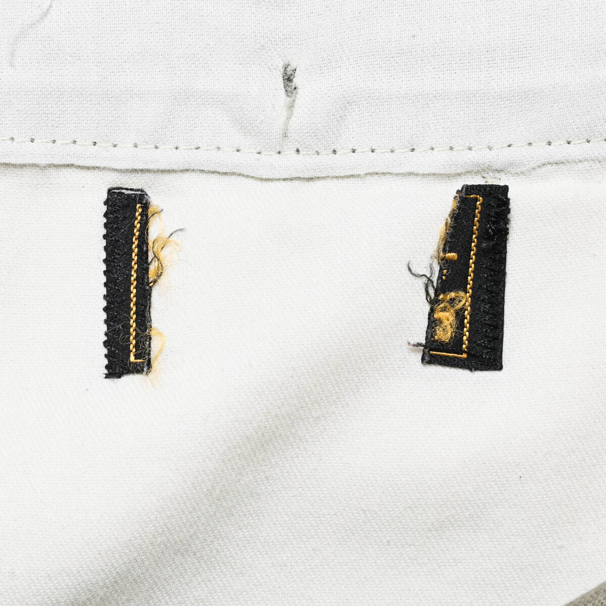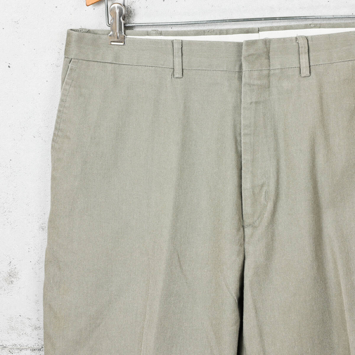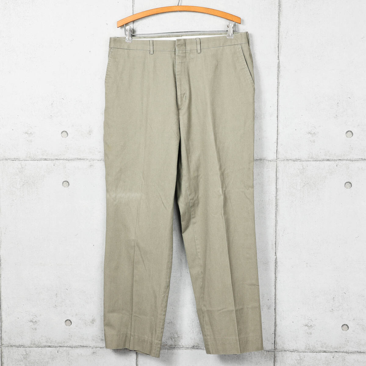 【ブランド】 Eddie Bauer / エディーバウアー 【アイテム】 プレーンフロント チノパン 【商品説明】 アメリカで購入しました、エディーバウアーのプレーンフロントタイプのチノパンになります。 【カラー】 グレー系 【コンディション】 使用に伴う色落ちや擦れなどがあります。 内側のタグがカットされています。 右ひざ上部分に日焼け跡があります。 【サイズ】 サイズ:W36 ウエスト:88cm 股上:31cm 股下:74cm 裾幅:23cm | |||