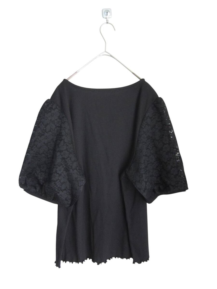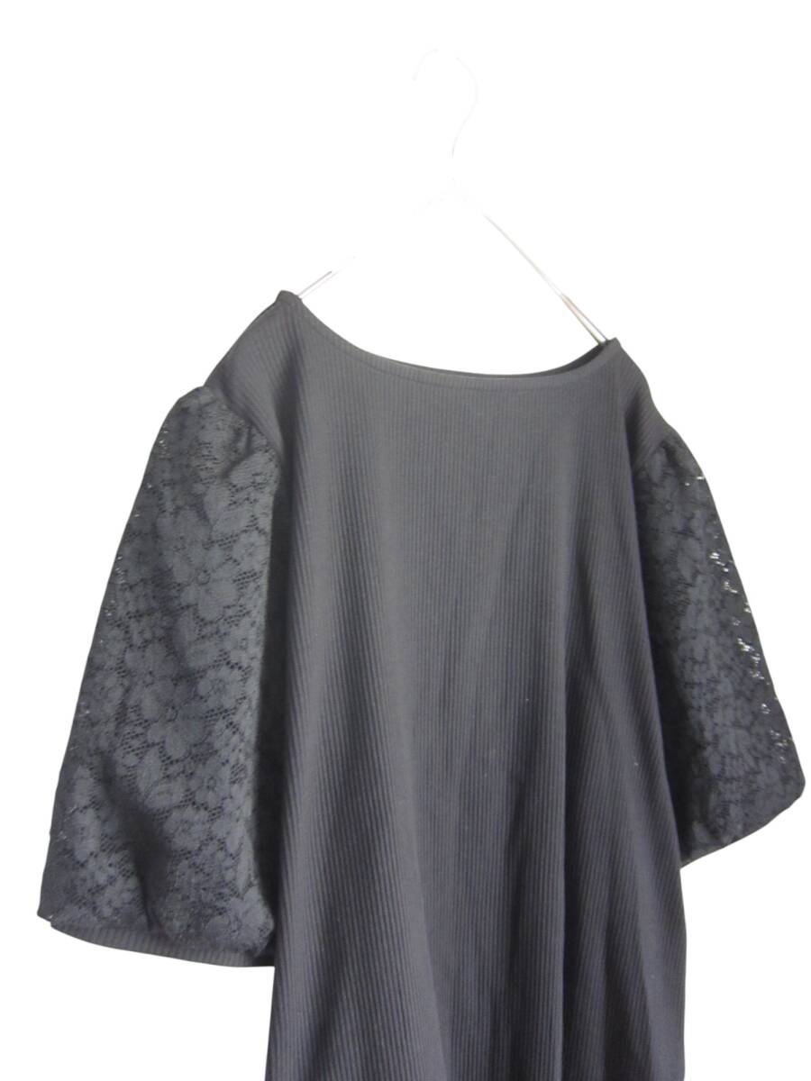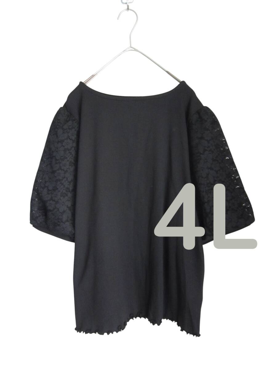 ★送料無料 D48 美品 【4L】 ブラック リブ 袖レース 半袖 カットソー 大きいサイズ ゆうパケットポスト