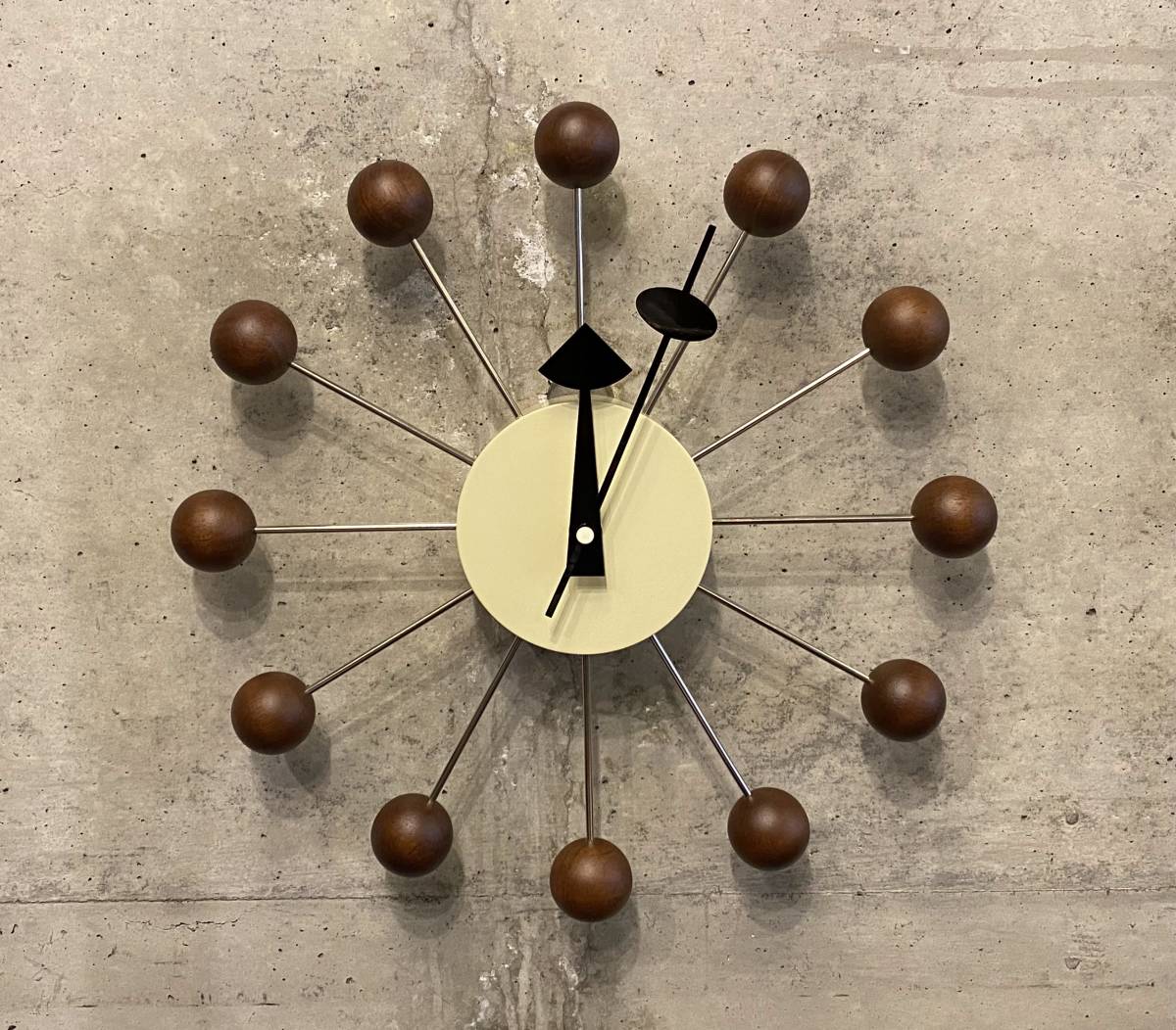 Ball clock walnut/ボールクロック ウォールナット色(検,midcentury,ミッドセンチュリー,イームズ,ビンテージ,50's,60's,ジョージネルソン