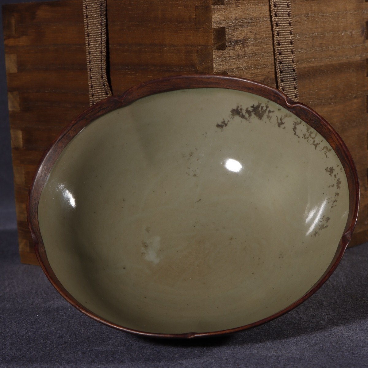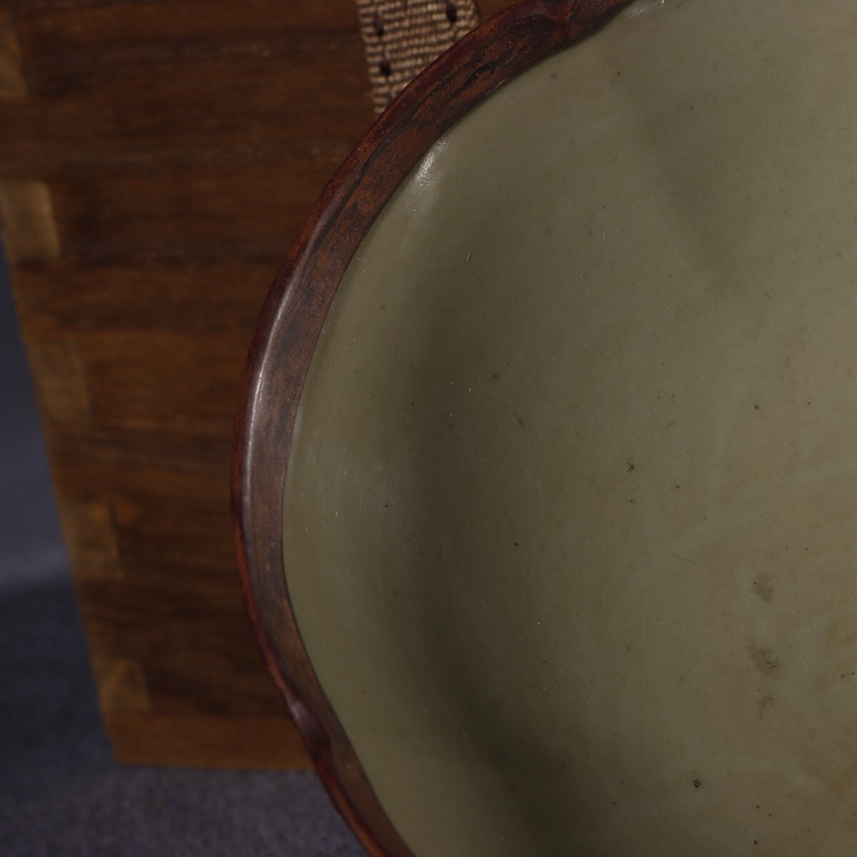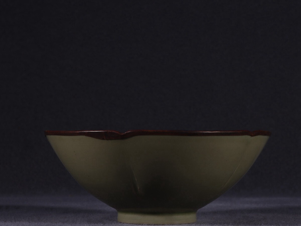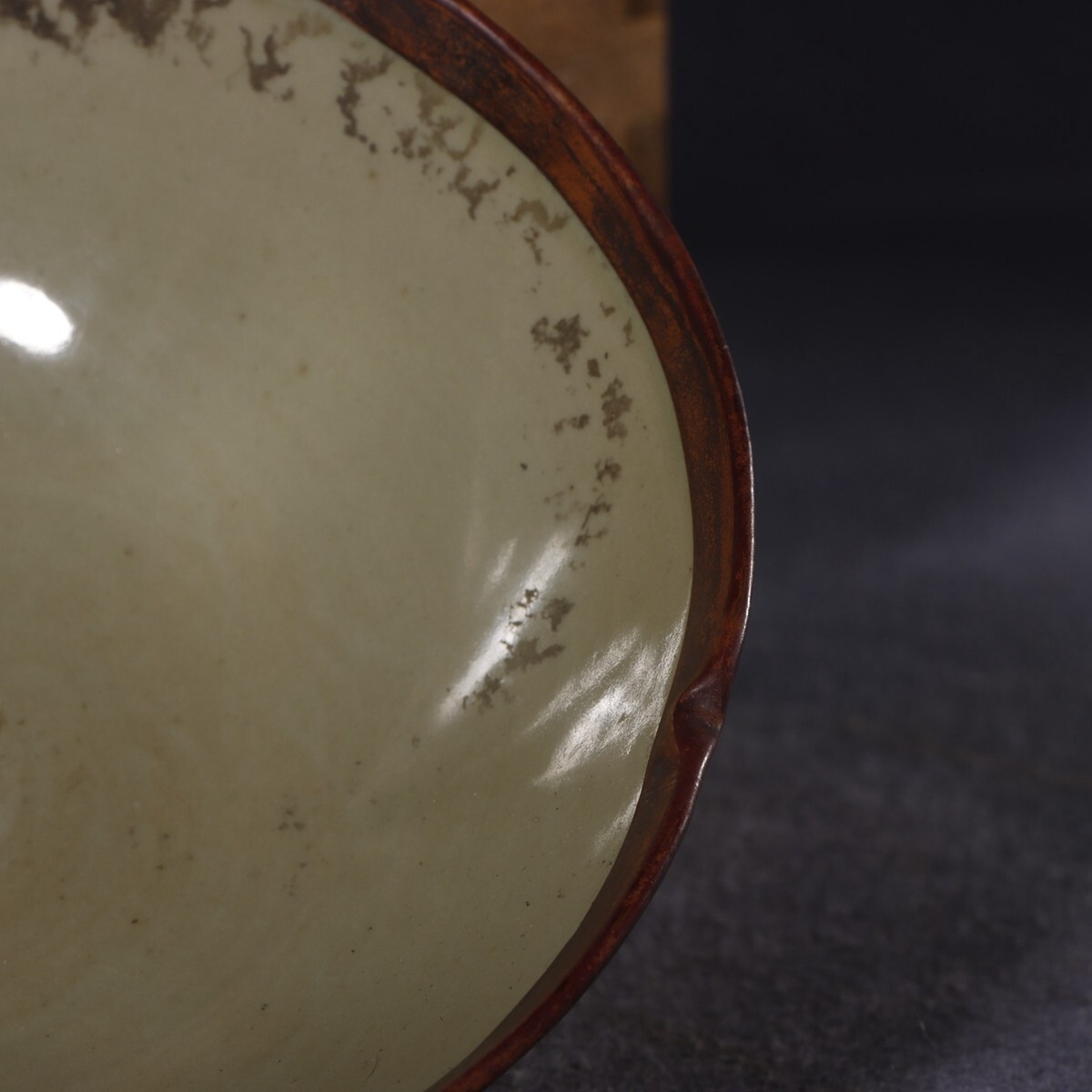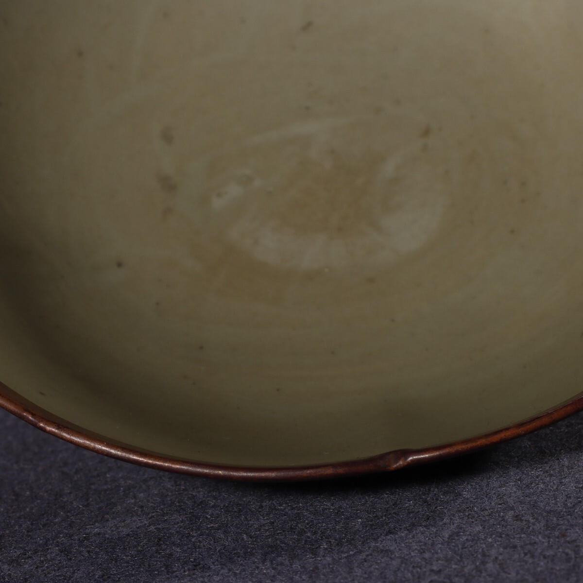 【瓏】陶磁器 越窯 秘色青瓷 嵌紫銅口 碗 唐代 染付 置物擺件 古賞物 古美術 陶芸 蔵出