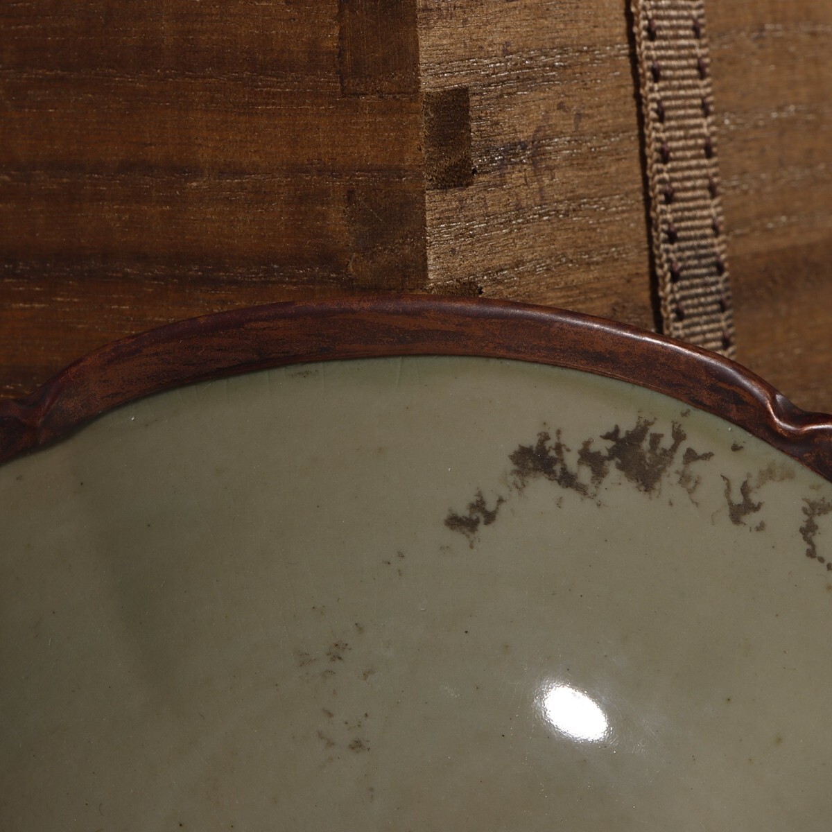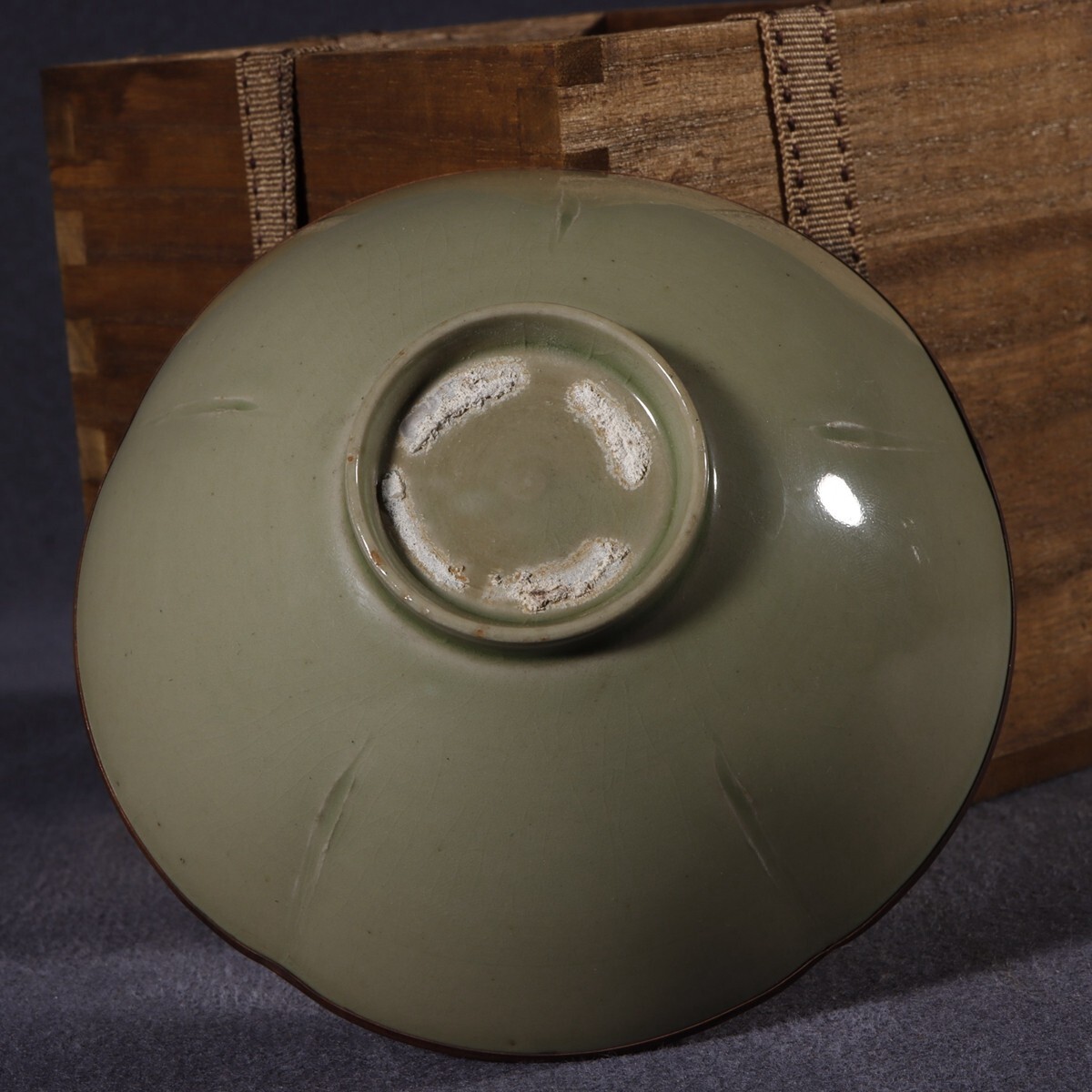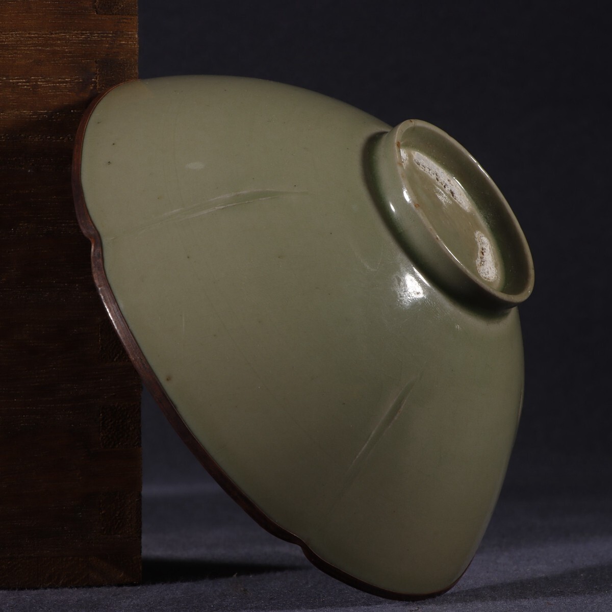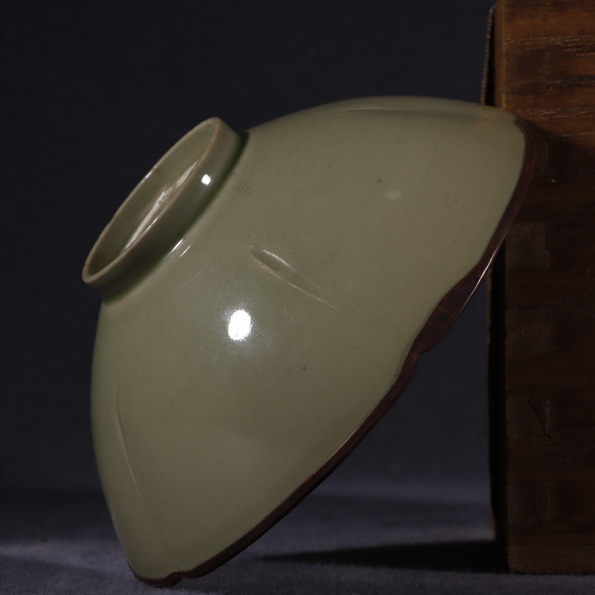 【瓏】陶磁器 越窯 秘色青瓷 嵌紫銅口 碗 唐代 染付 置物擺件 古賞物 古美術 陶芸 蔵出