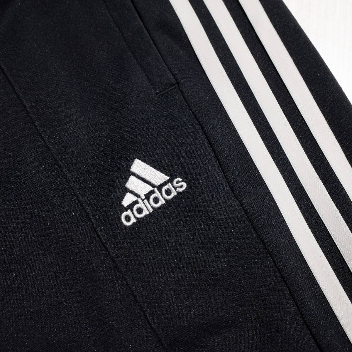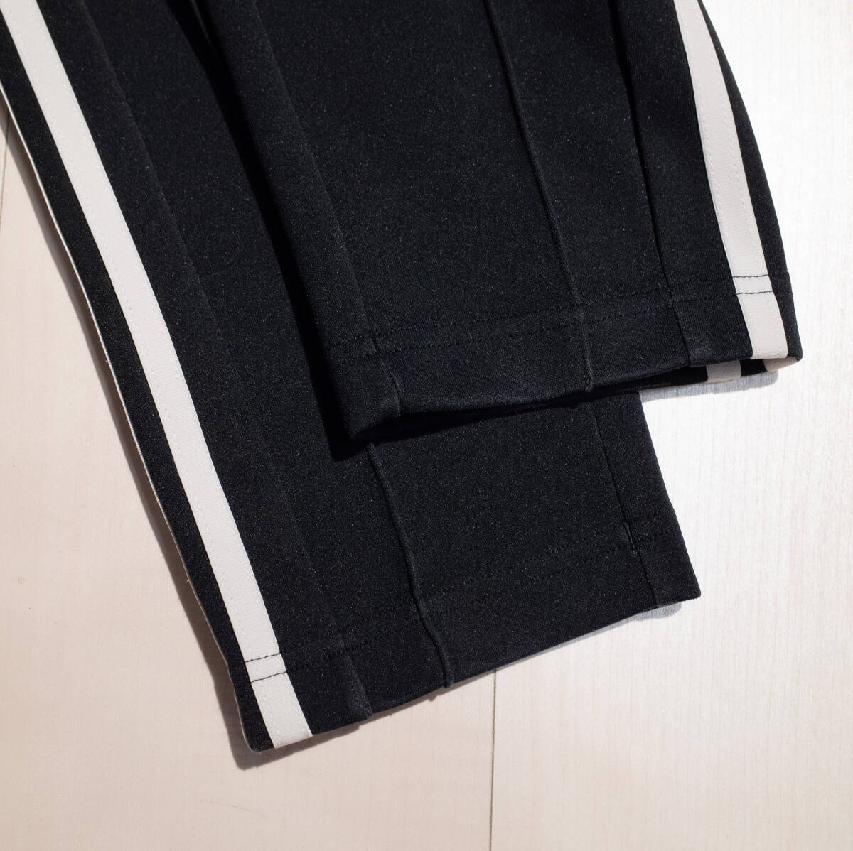 ブラックボディに映えるホワイトの3ストライプと刺繍ロゴが、スポーツMIXやストリートコーデにも合わせやすい1本です。