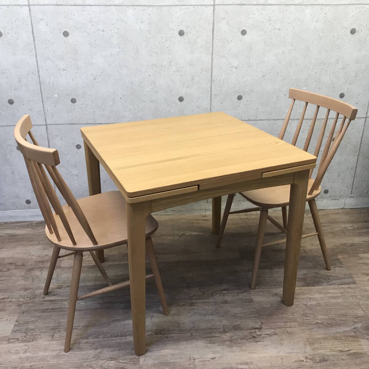 年式・サイズ | メーカー:ウニコ サイズ:テーブル:約 W 75-100-125×D 75×H 72cm チェア:座42.2背48.0×D座42最大51.5×H85.3 |