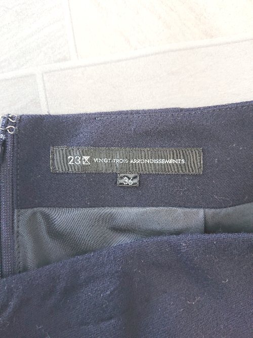 ◇ ⊇ 23区 ニジュウサンク ウール混 ロング タイトフレア スカート サイズ36 ネイビー レディース E