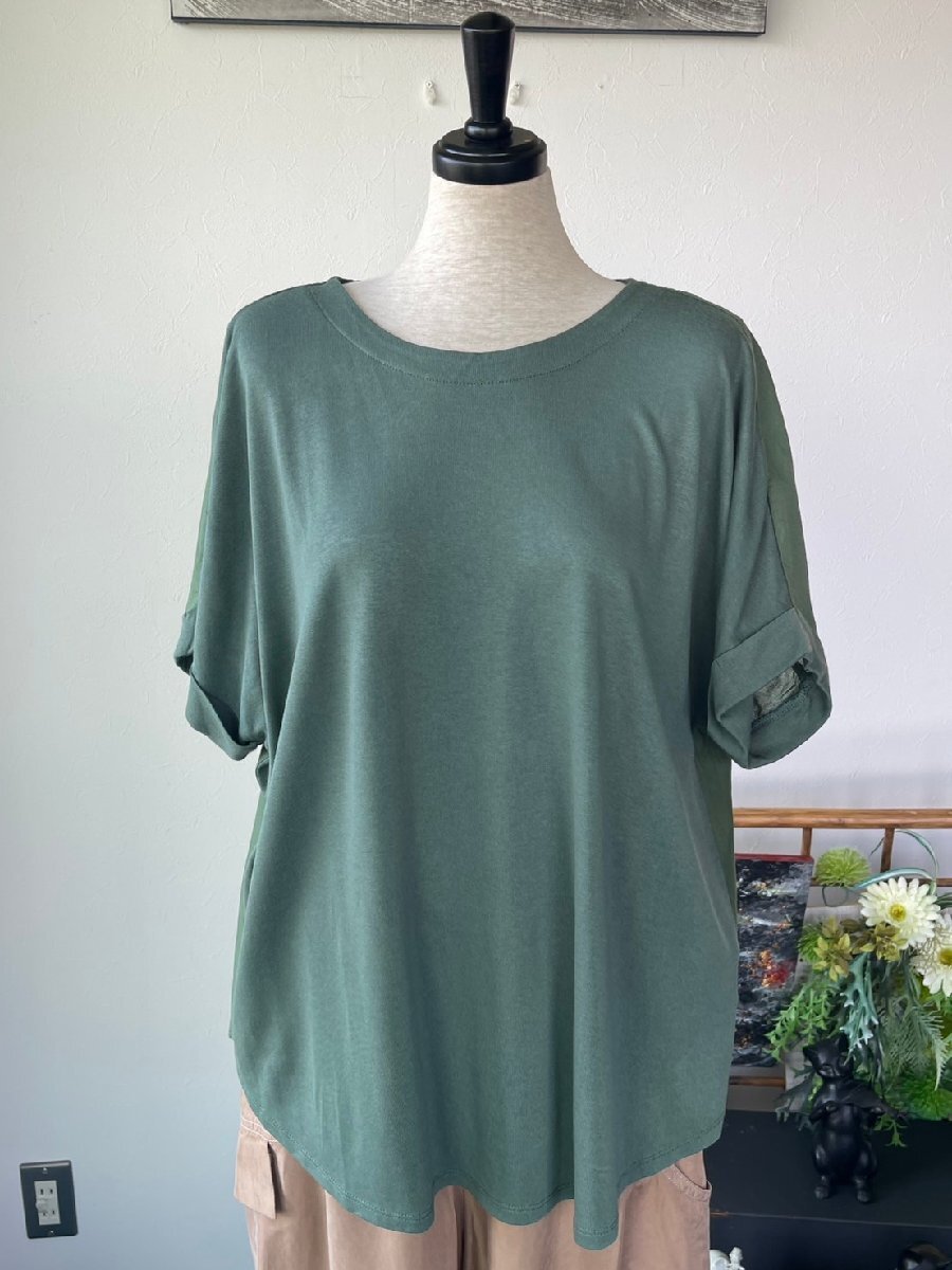 レディース トップス カットソー 前後異素材 ゆったり 大人 大人コーデ カジュアル おしゃれ 美品