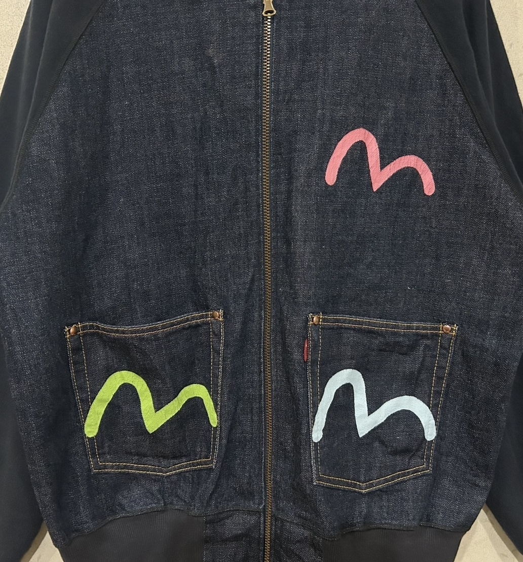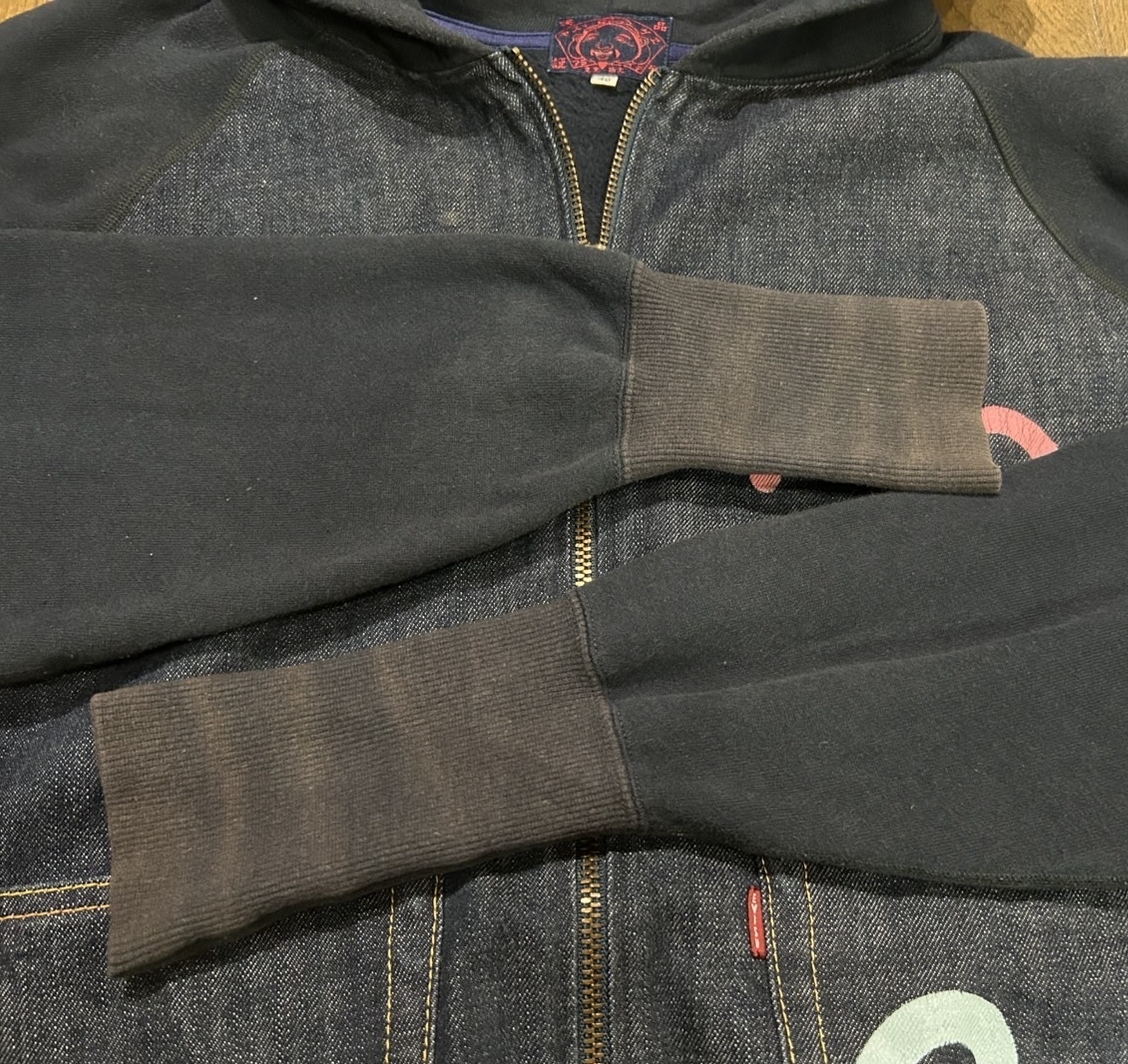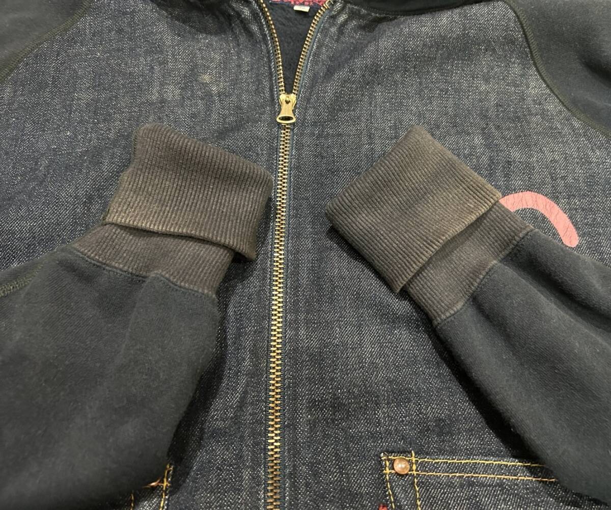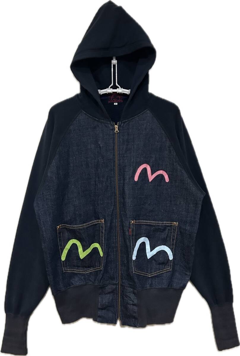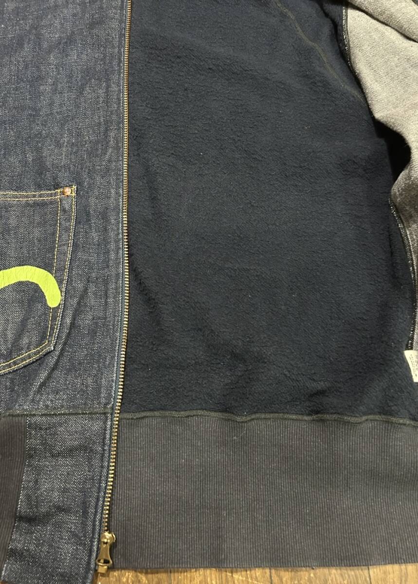 *エヴィス EVISU カモメ ペイント デニム 切替 ジップパーカー 日本製 40       BJBE.H