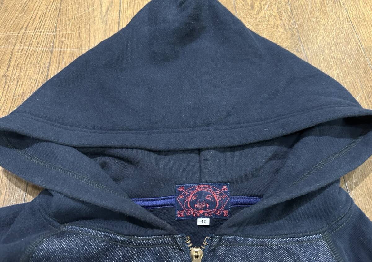 *エヴィス EVISU カモメ ペイント デニム 切替 ジップパーカー 日本製 40           BJBE.H
