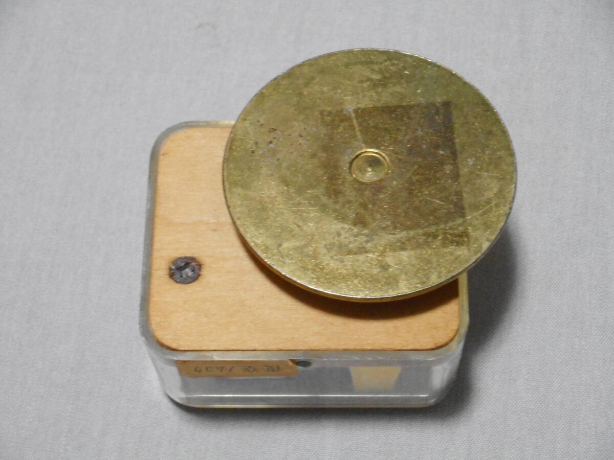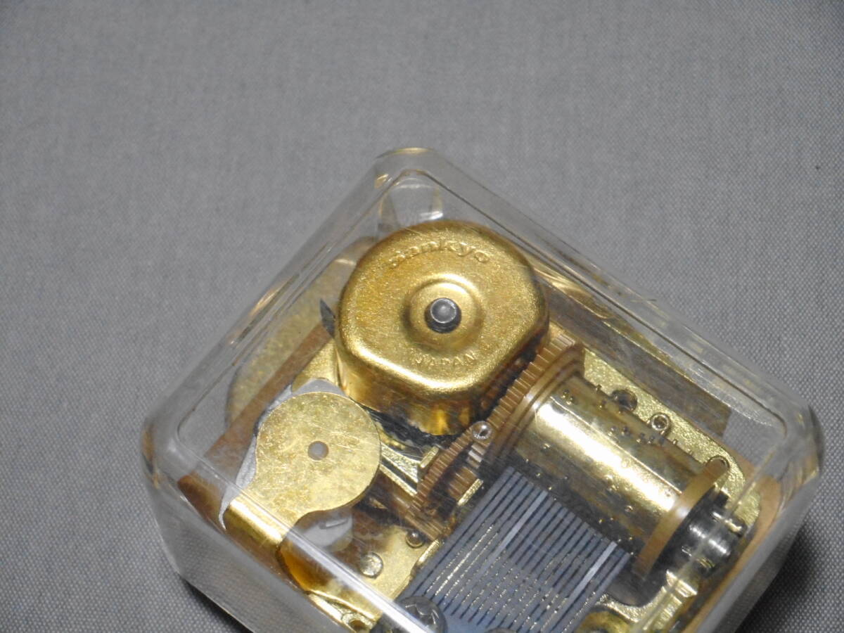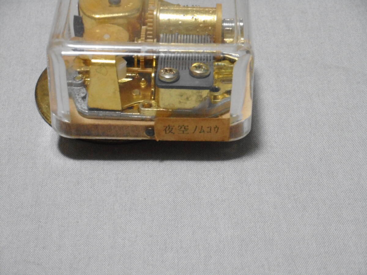 台座になっている部分をネジ巻きして上本体が回転します。音出ています。見た目やや経年の感はあります。写真にあるものだけです。