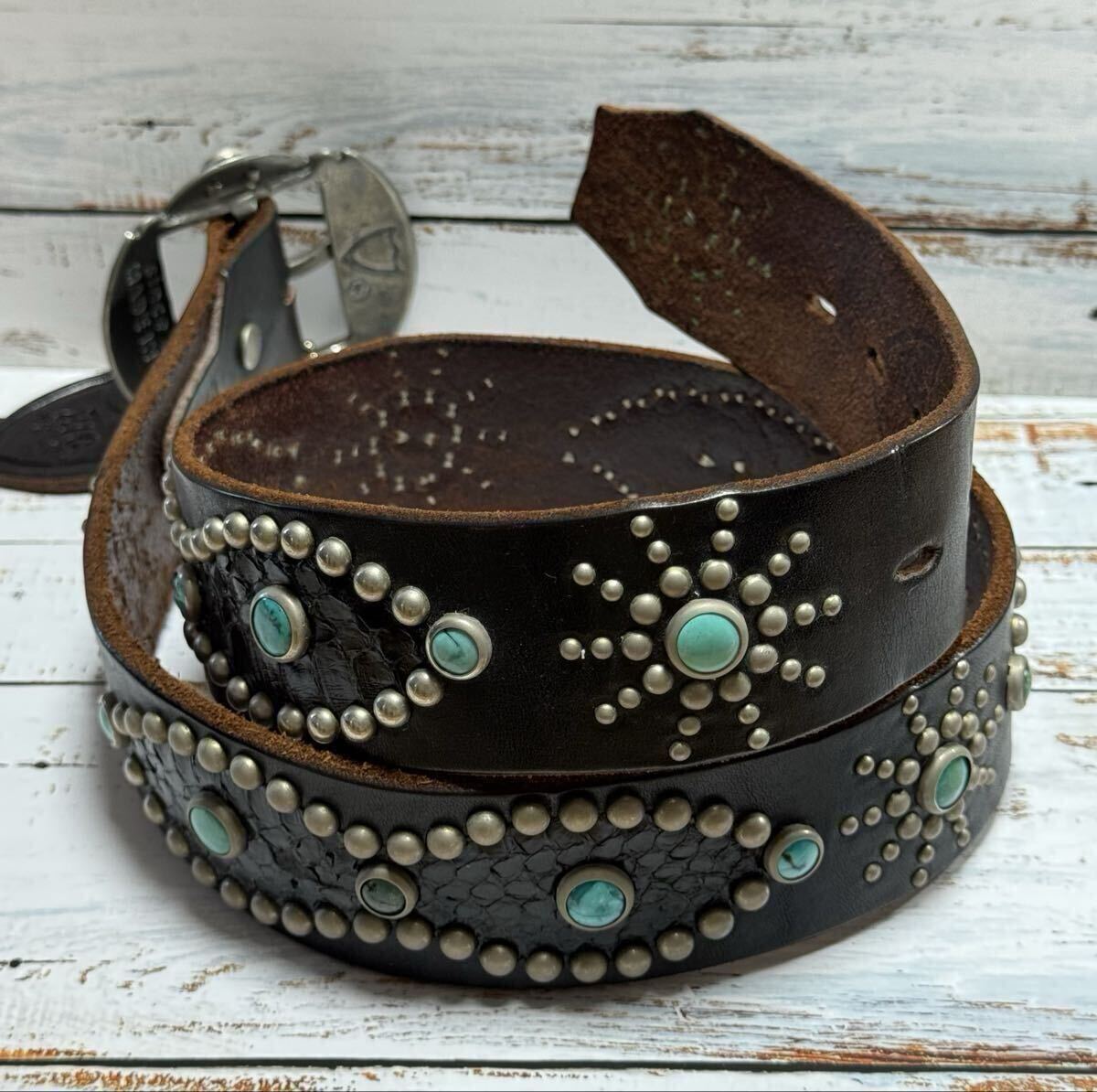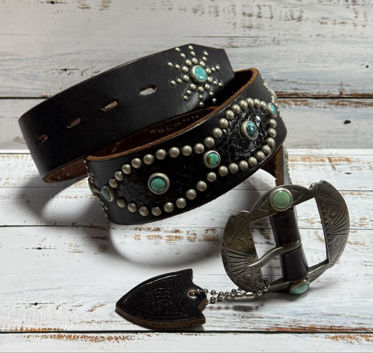 ヴィンテージバッグルもターコイズ。