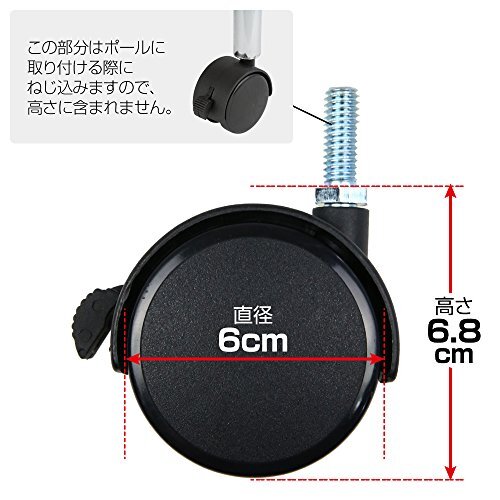 説明 より ●ラックの移動に便利なキャスターや、安定性がアップする三角プレート脚、円形アジャスターがあります ●キャスター各種、三角プレート脚、円形アジャスターの高さサイズ表記は、ポールにねじ込むネジ切り部は含まれていません ●高さサイズ表記は六角ナット上面から床設置面までの寸法になります ●【注意事項】床の素材によっては床に傷や押しあと、あるいはへこみがつくことがあります ●【注意事項】クッションフロア材の上でご使用の場合、フロア材の表面が変色する場合がございます。あらかじめご了承ください