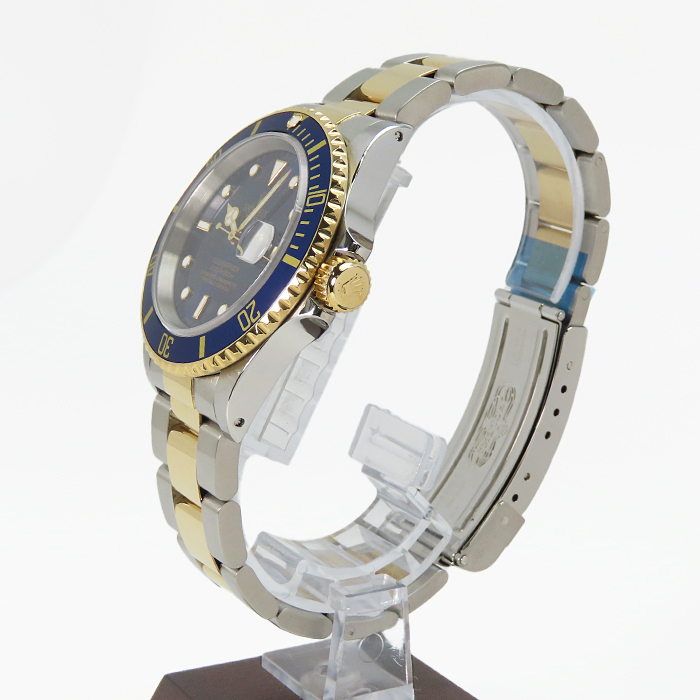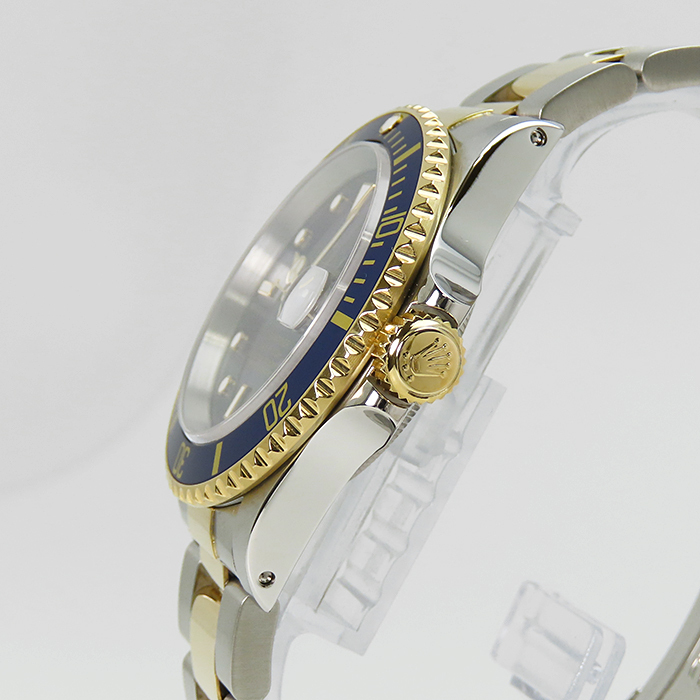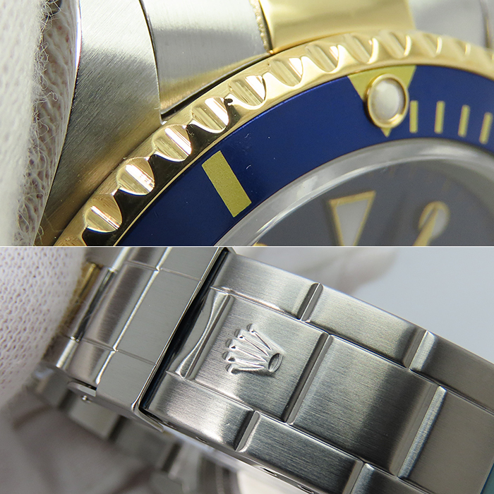 商品説明 | N番(1991年)です。保証書に記載の購入日は1997年8月です。夜光はトリチウムです。 人気モデル「サブマリーナー」の中でも、鮮やかなブルー文字盤にブルーベゼルで特に人気のある「青サブ」と呼ばれるモデルです。ステンレス×ゴールドのコンビブレス、ベゼルやリューズのゴールドが華やかで、ビジネスにもカジュアルにも映えるラグジュアリーなダイバーズウォッチです。 |