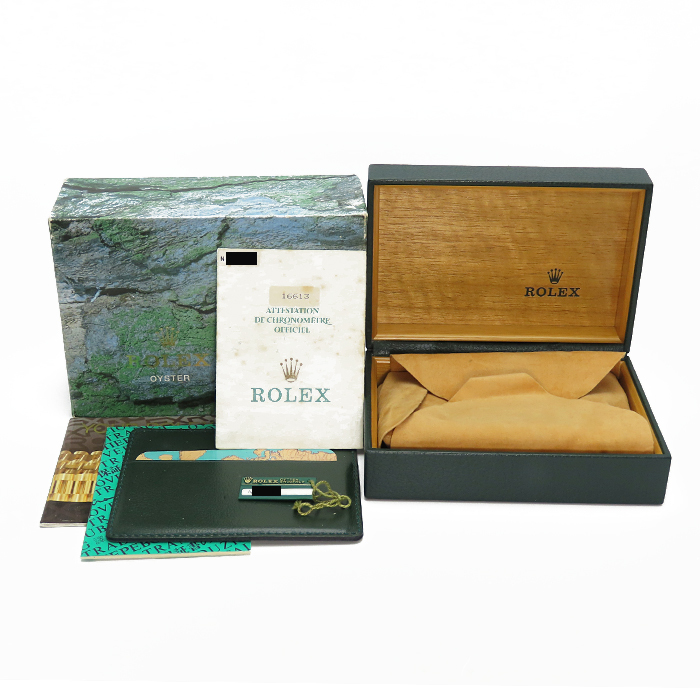 メンテナンス情報 コンディション | 弊社指定の時計業者にて、O.H.(分解掃除)、新品仕上げ済みです。 ケースは特に目立つような小キズは見受けられず綺麗です。ベゼルとバックルに小キズが見受けられますが、いずれもルーペで確認して見える程度の小キズです。弊社指定の時計業者にてメンテナンスを済ませた状態の良い商品です。 |