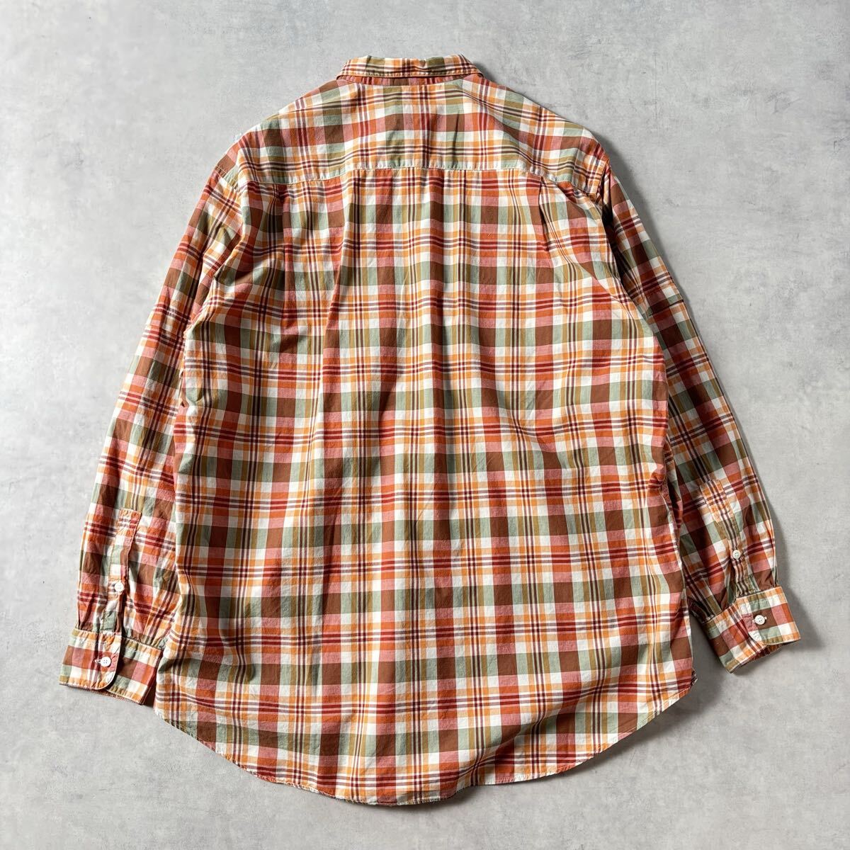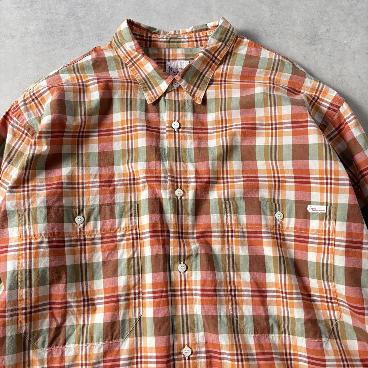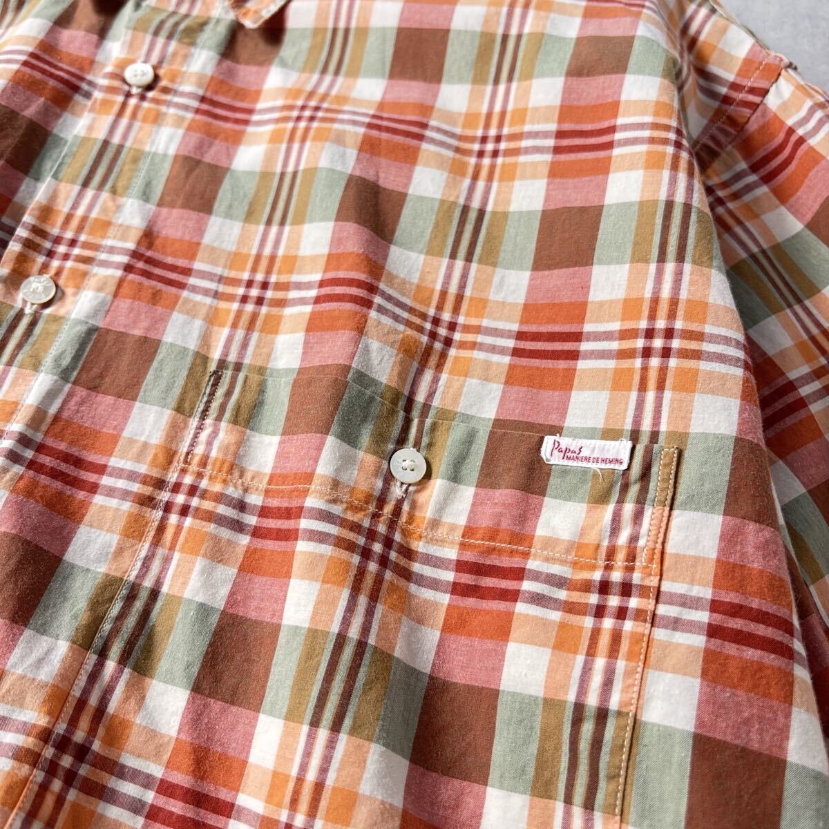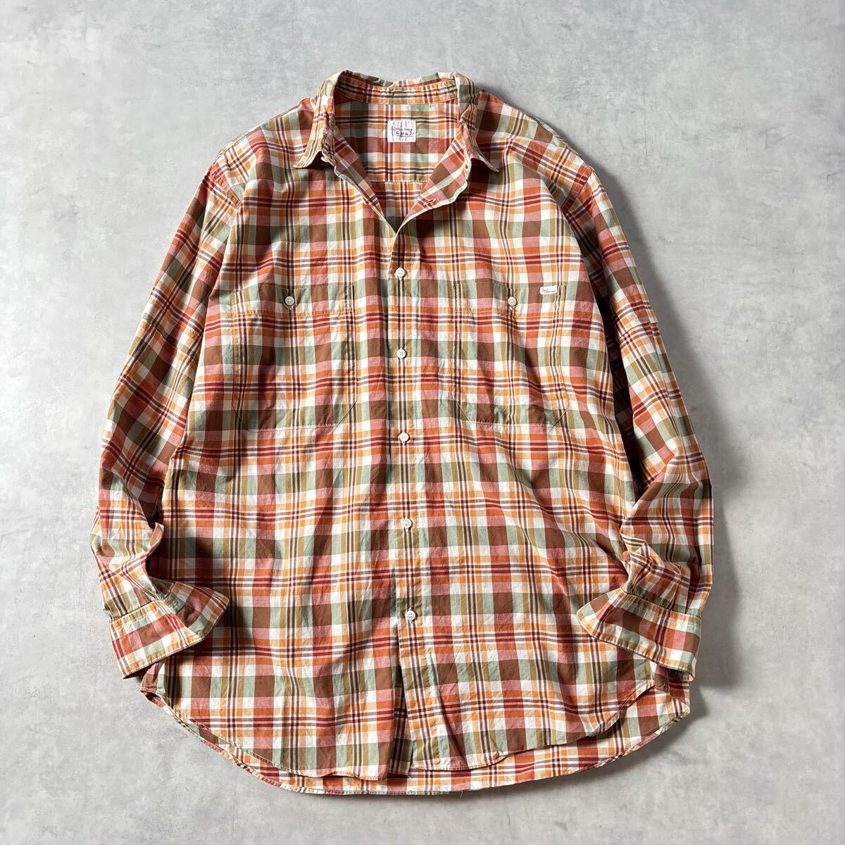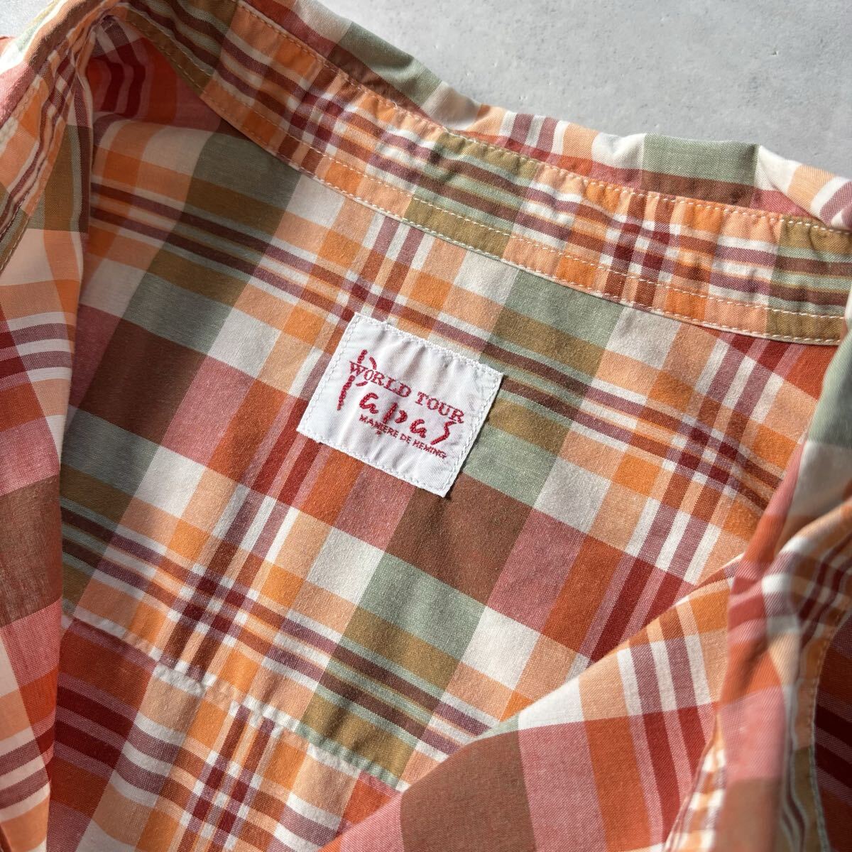 Papas MANIERE DE HEMING パパス WORLD TOUR ワールドツアー チェック 長袖シャツ 胸ポケット コットン 日本製 (M) オレンジ系 ●r-824