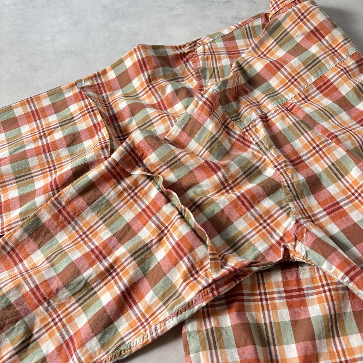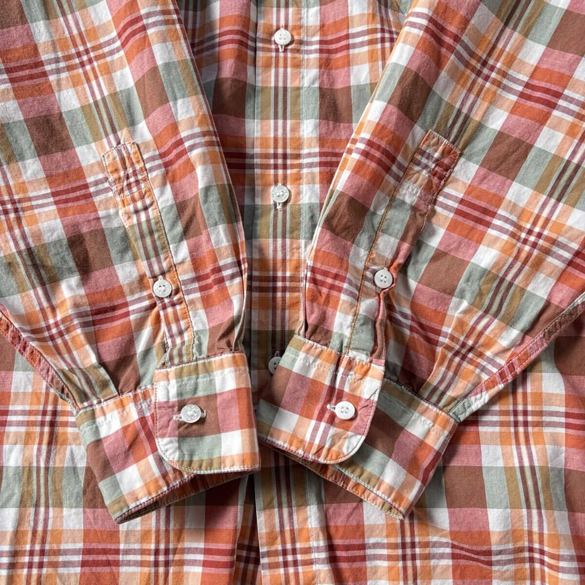 Papas MANIERE DE HEMING パパス WORLD TOUR ワールドツアー チェック 長袖シャツ 胸ポケット コットン 日本製 メンズ (M) オレンジ系 ●r-824