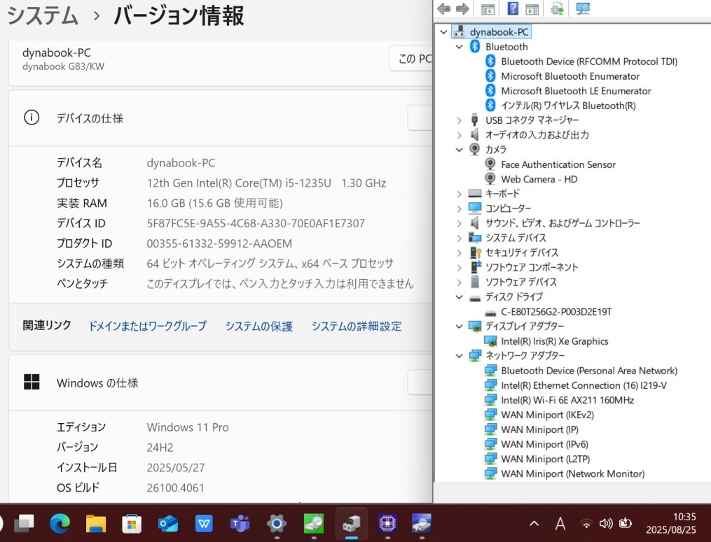 | OS: 最新 Windows11 Pro 64bitアップグレード済み、Microsoft正規版 認証済み 安心使用。 |