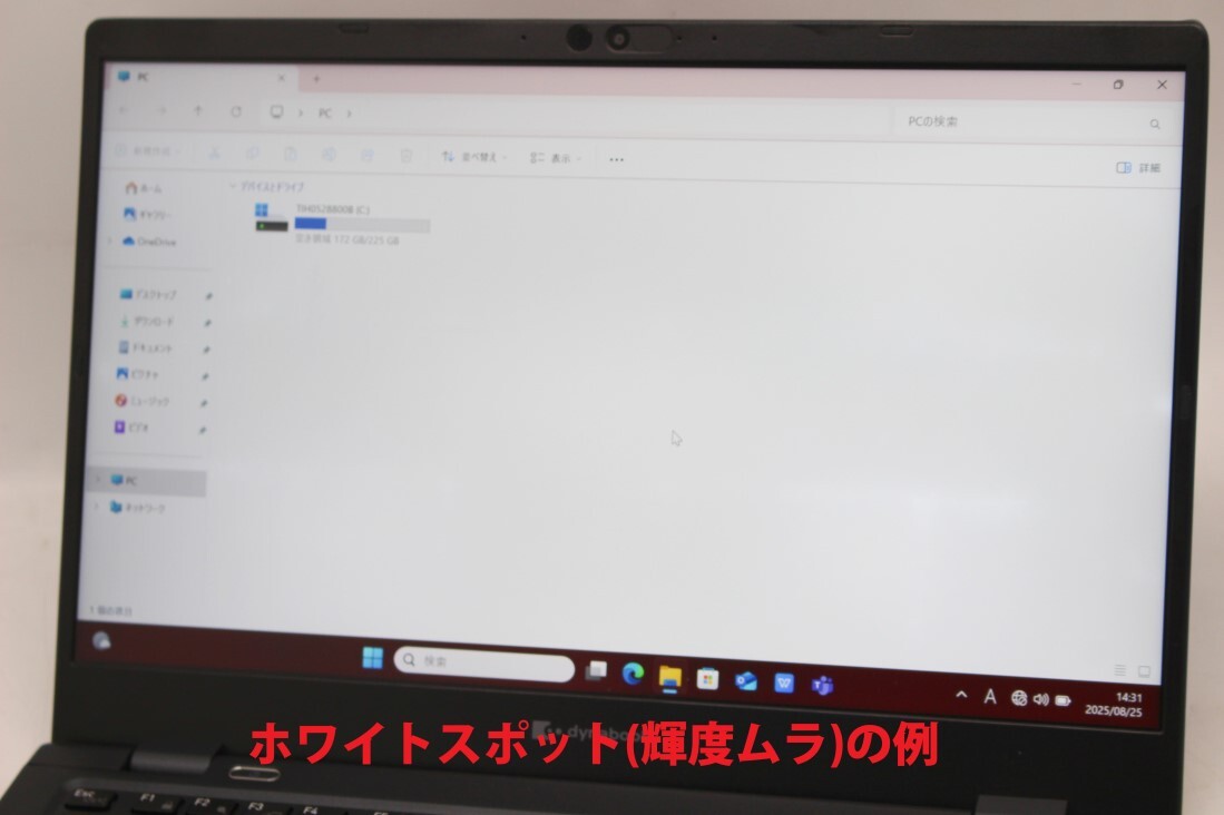 | 液晶 | 画面に少し微かなホワイトスポット(輝度ムラ)とキーボード跡がございますが通常使用支障はございません。 |