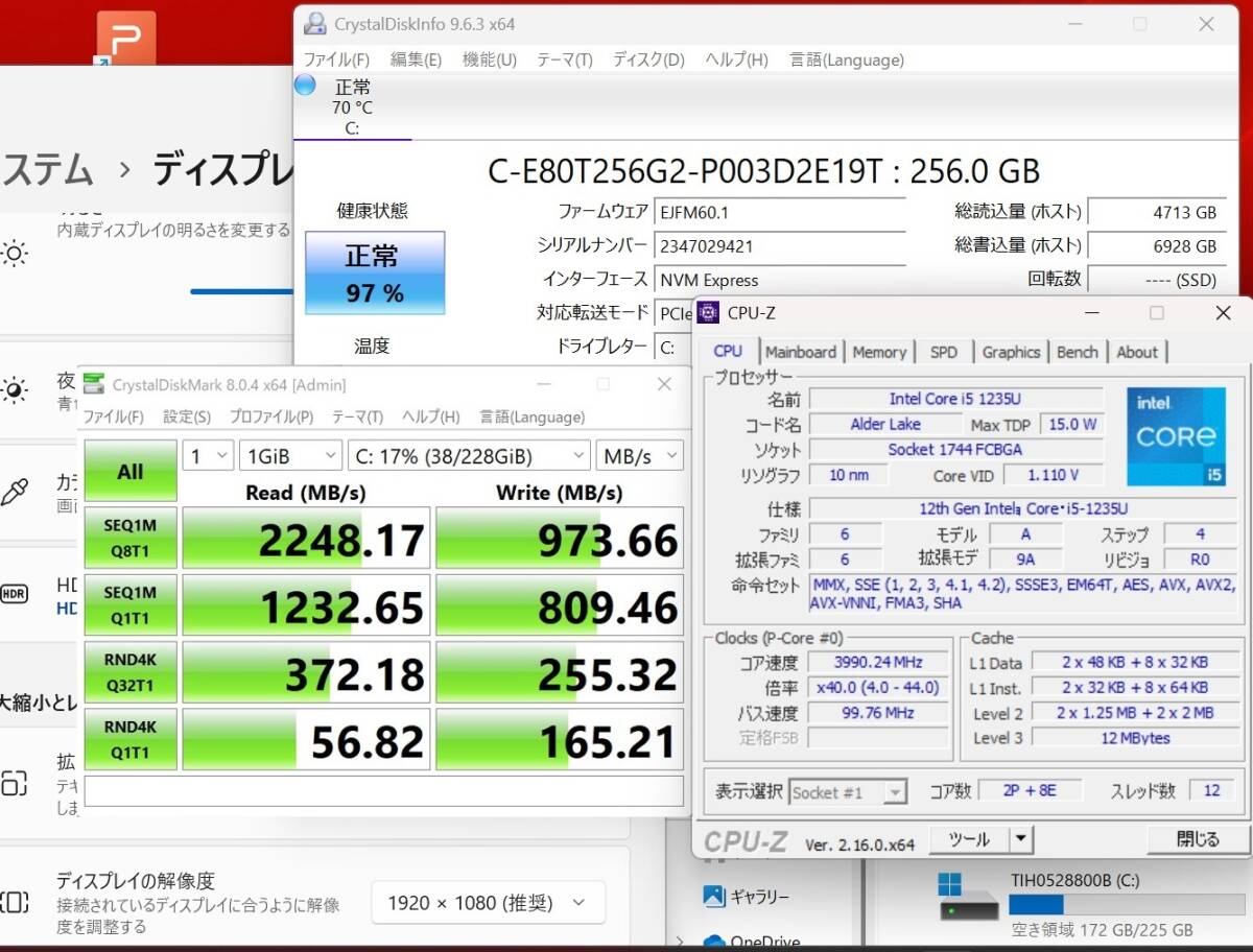 | CPU: 超高速 Intel 10コア 卓越性能 第12世代Core i5-1235U 1.3Ghz、 10コア12スレッド (ターボ・ブースト利用時の最大周波数 4.4GHz) |