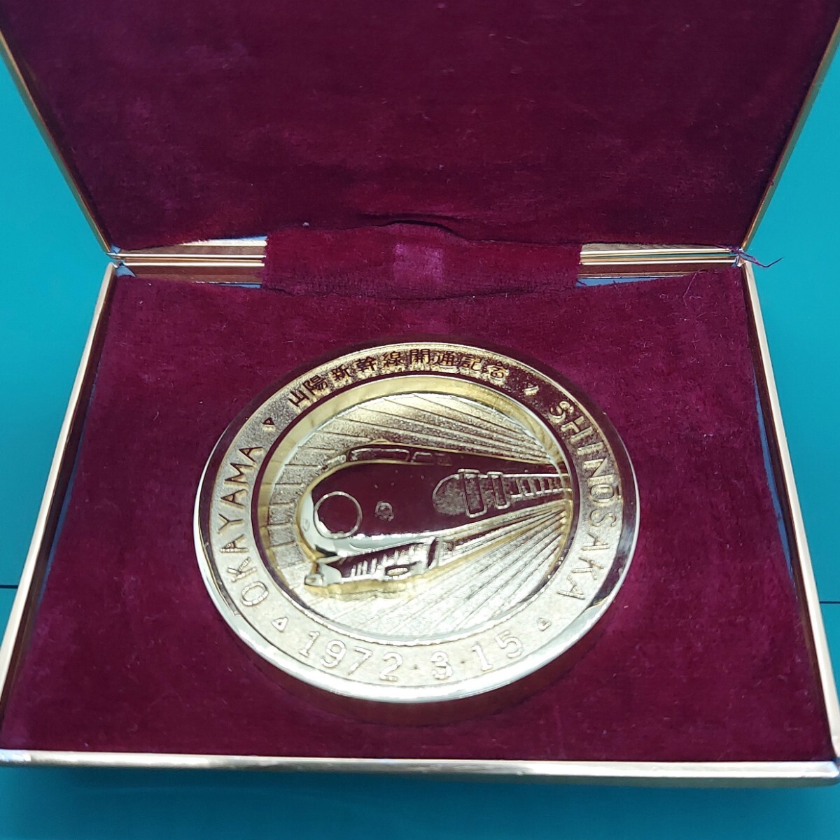 記念メダル 純金メッキ 山陽新幹線開通記念メダル 1972年3月15日山陽新幹線(新大阪~岡山間)開通記念 ケース・説明書付き 【L122】