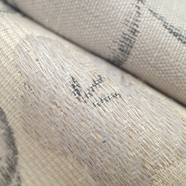 暖かみある質感のこちらのお品は、薄ベージュ色に金通しが施された地。